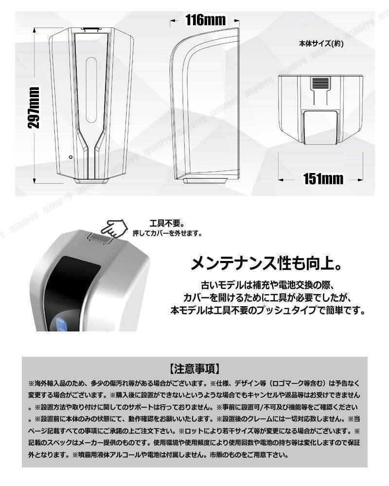 ※噴霧用液体アルコールや電池は付属しません。市販のものをご用意下さい。