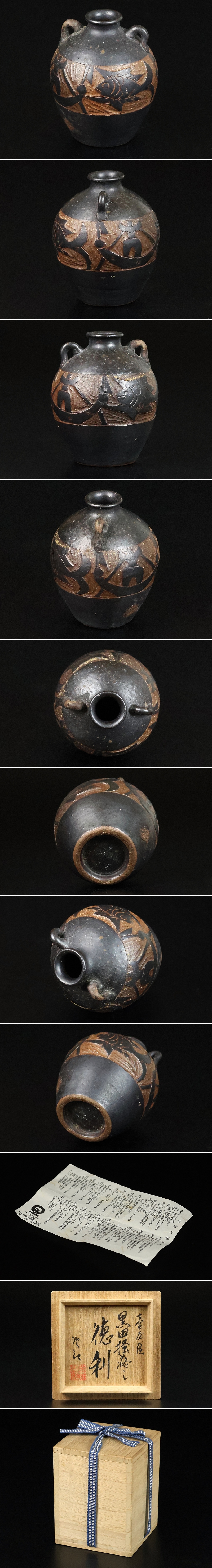 【 金城次郎 】秀逸作 壷屋焼 黒田掻落し徳利 人間国宝 共箱 保証 收藏