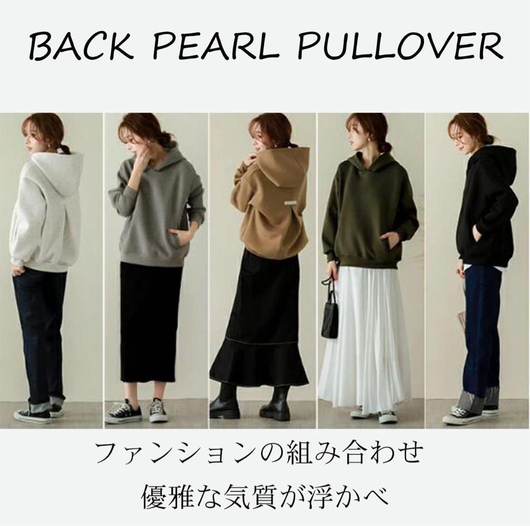 パーカー レディース バックオープン パール シンプル 長袖 レディース 裏起毛 收藏