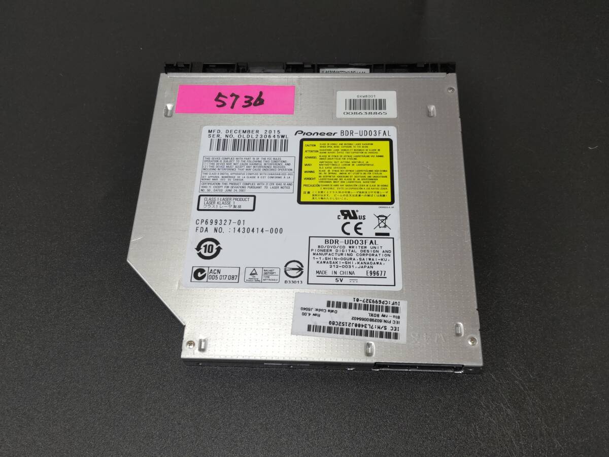 BD XL対応(3層 100GB/ 4層 128GB)Pioneer BDR-UD03FAL 9.5mm厚 ウルトラスリム Blu-rayドライブ 中古品 動作確認済 美品! NO5736