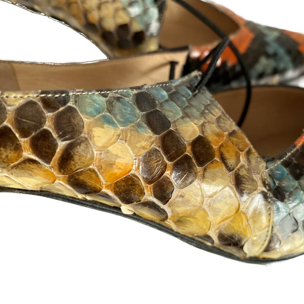 【希少】CHANEL シャネル パイソンレザー エキゾチックレザー ヒールパンプス 編み上げ 良品 23㎝ 36ハーフ 收藏