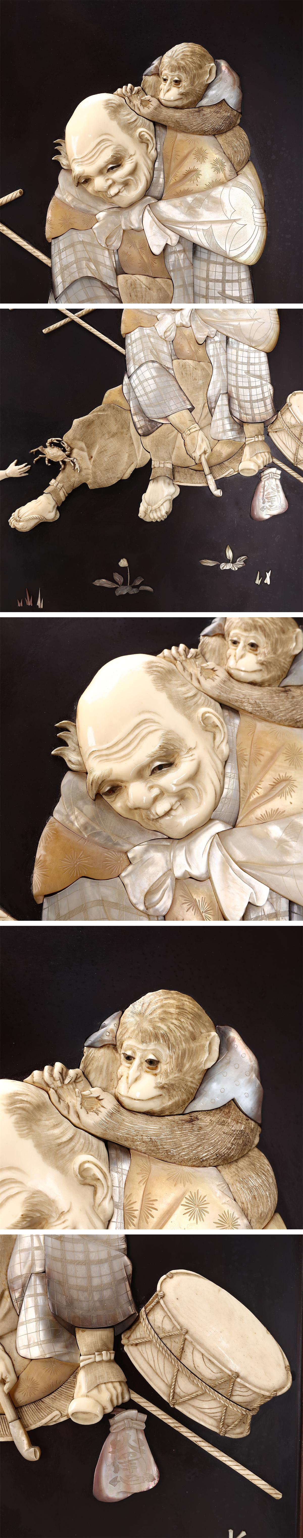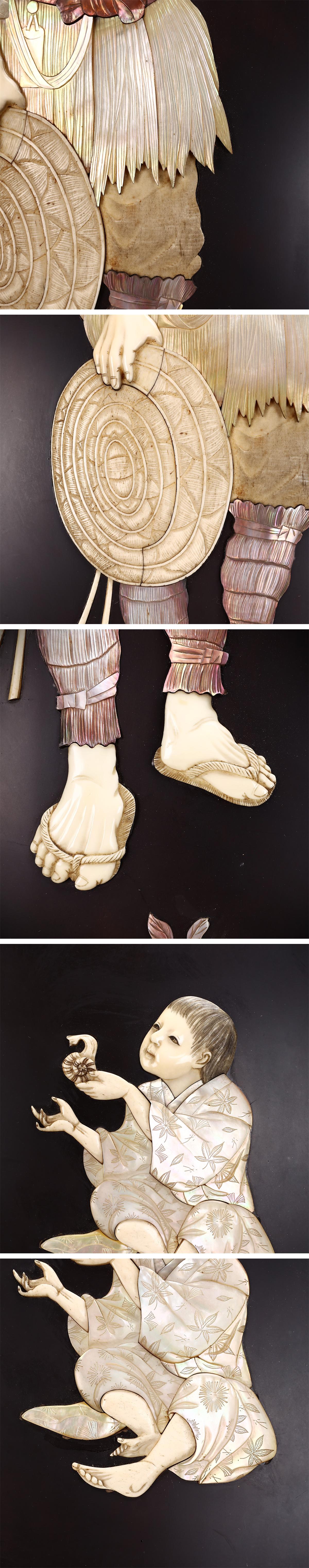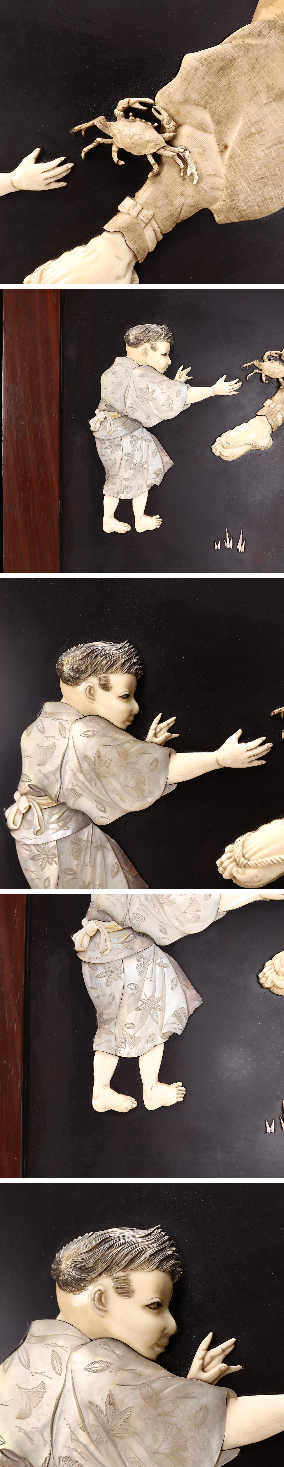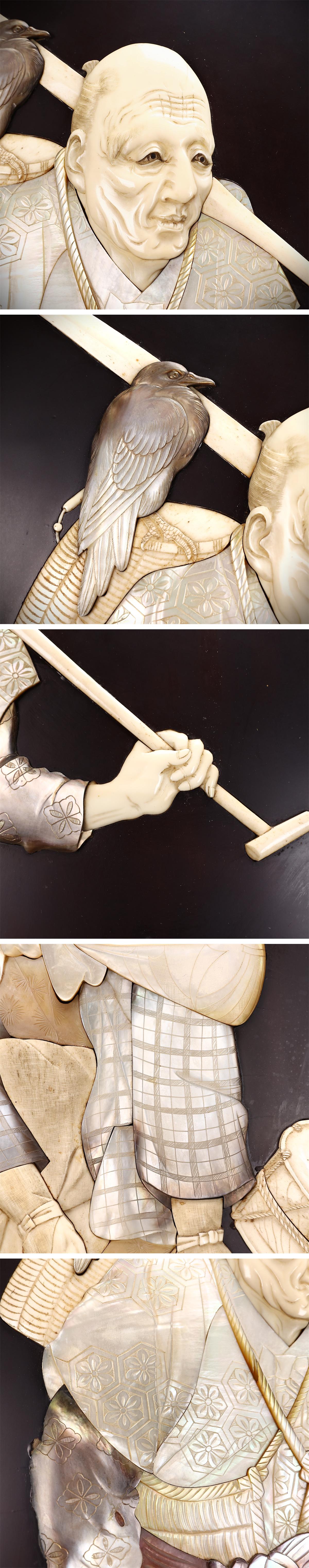 【吉】ZD575 江戸時代 東洋彫刻 水江 内藤銘 【芝山象嵌】 極細工 人物紋 壁掛 壁飾 2点 一対 幅77×52.5㎝/本物保証 美品GZ! 收藏
