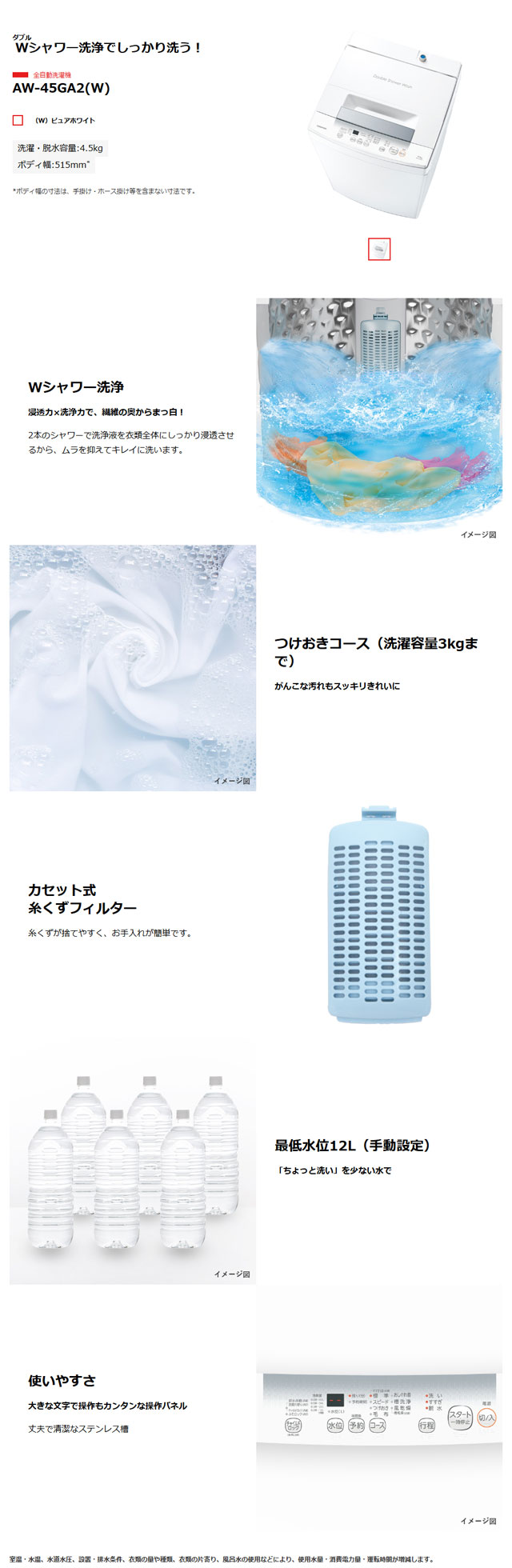 | メーカー・型式 | 東芝 / AW-45GA2(W) | |