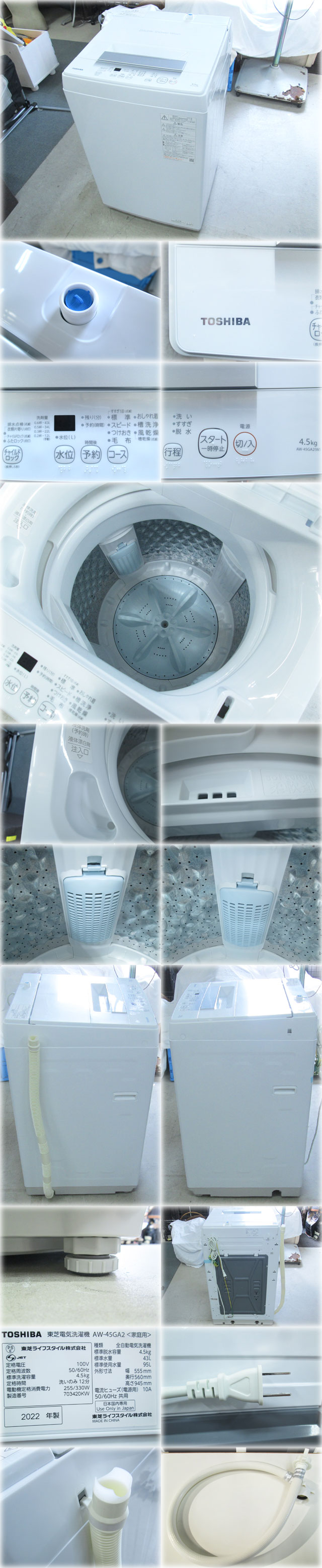 【2022年製】東芝 全自動洗濯機 AW-45GA2(W) 555x560x945mm 洗濯・脱水4.5kgWシャワー洗浄 カセット式糸くずフィルター 【長野発】 收藏