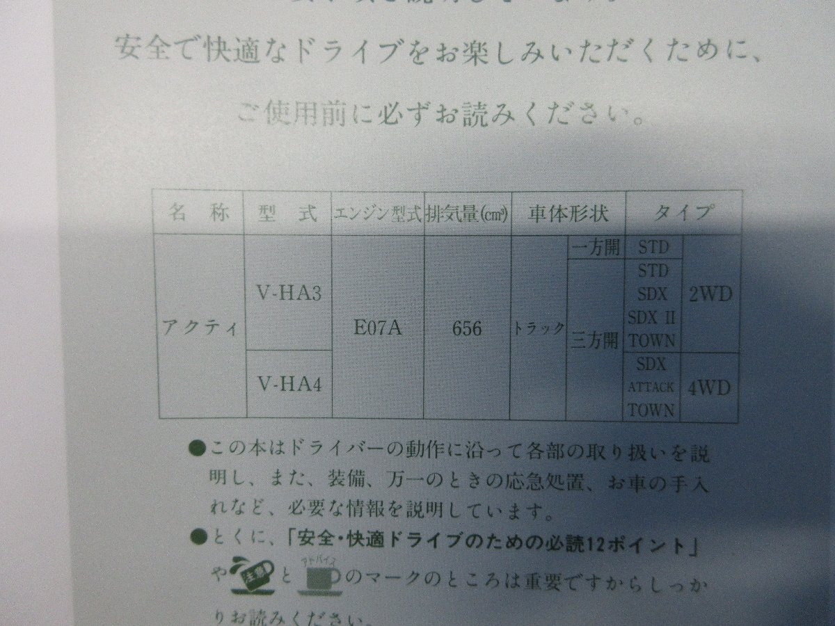 ホンダ アクティ トラック HA3 HA4 取扱説明書 取説 オーナーズマニュアル 中古品 (K 收藏