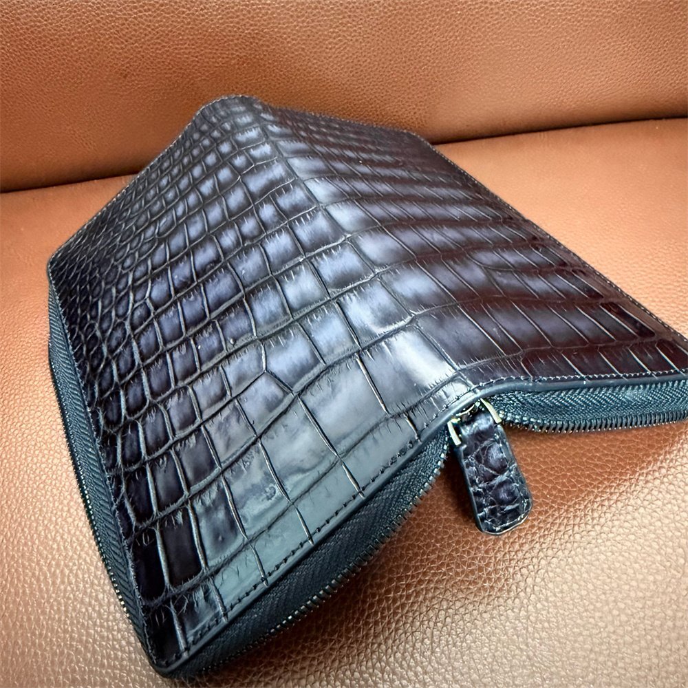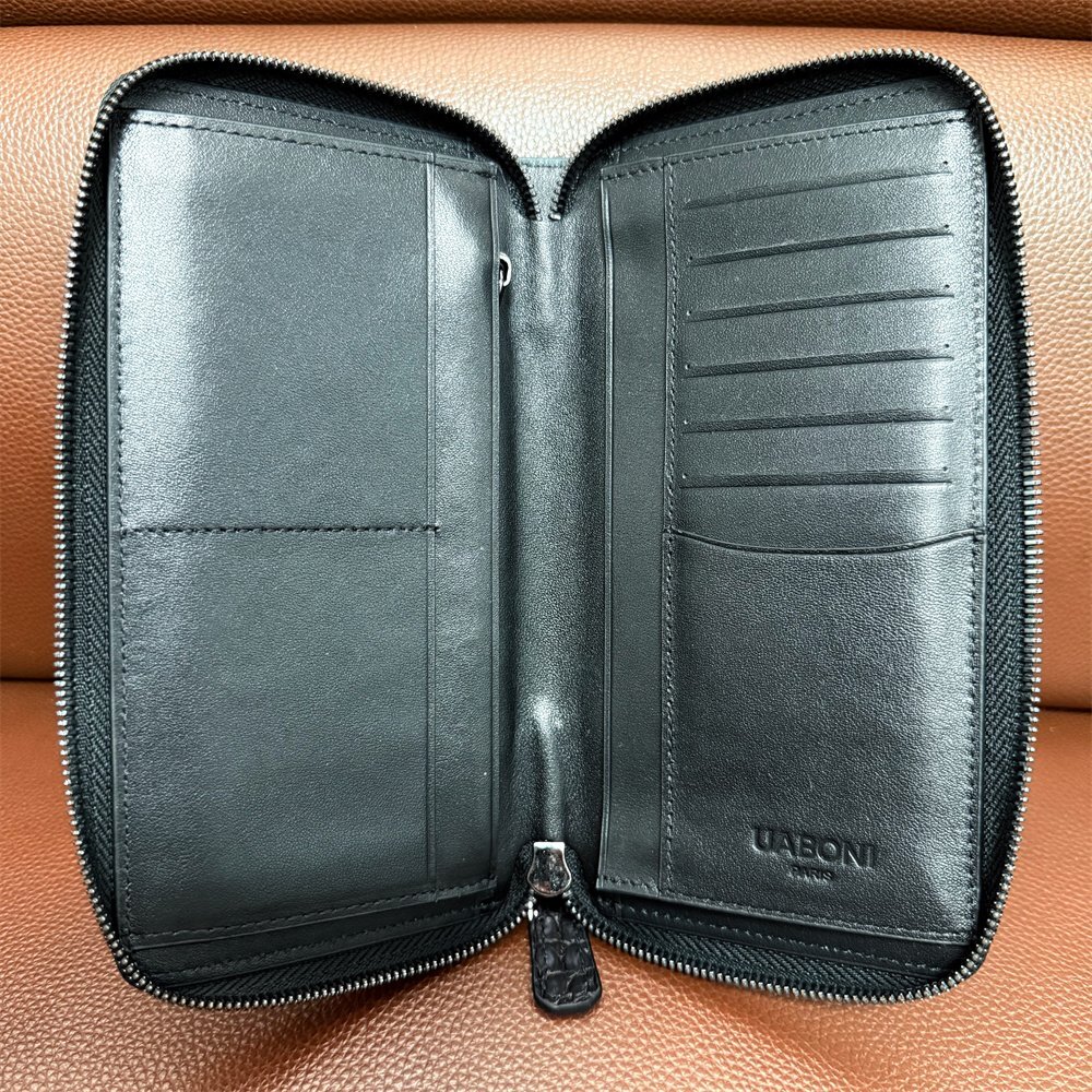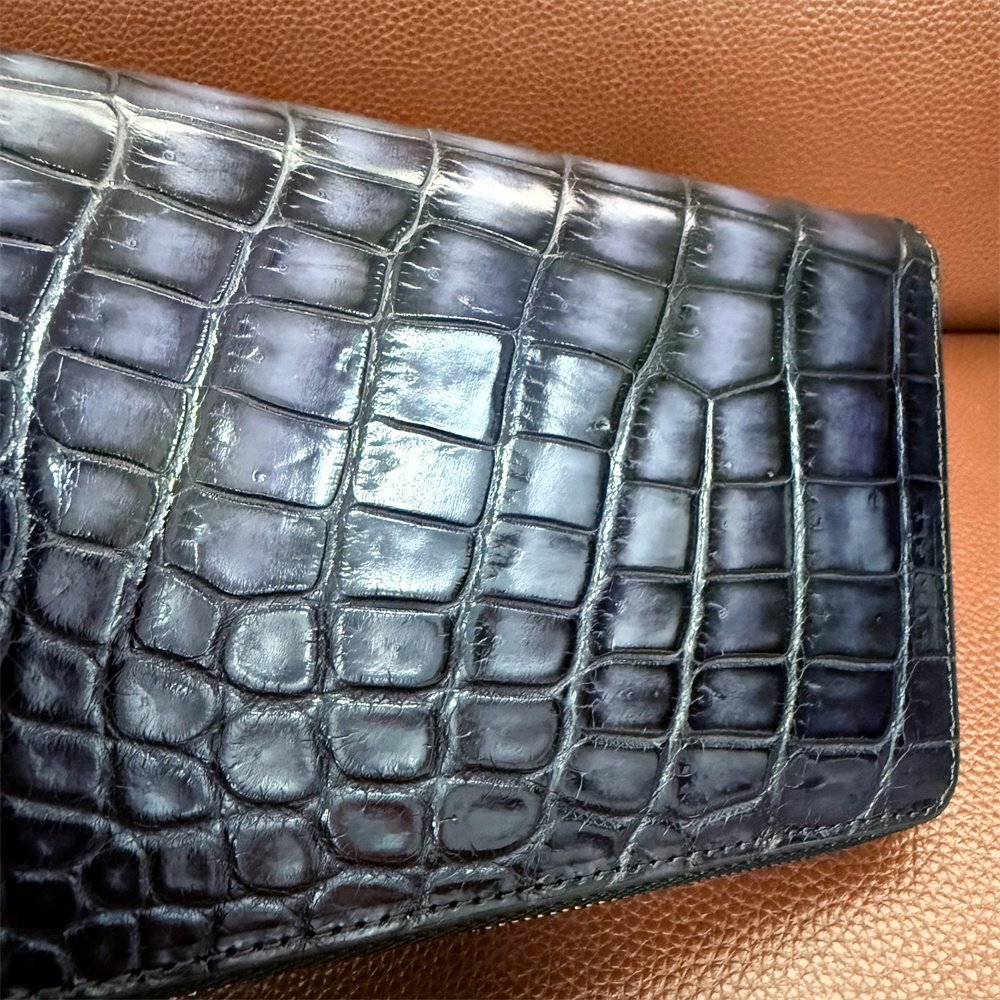 上級限定EU製&定価68万◆UABONI*アリゲーター・ファスナー長財布◆上品 希少 手染 パティーヌ クロコ 本革 レザー 紳士 通勤 ベルルッティ 收藏