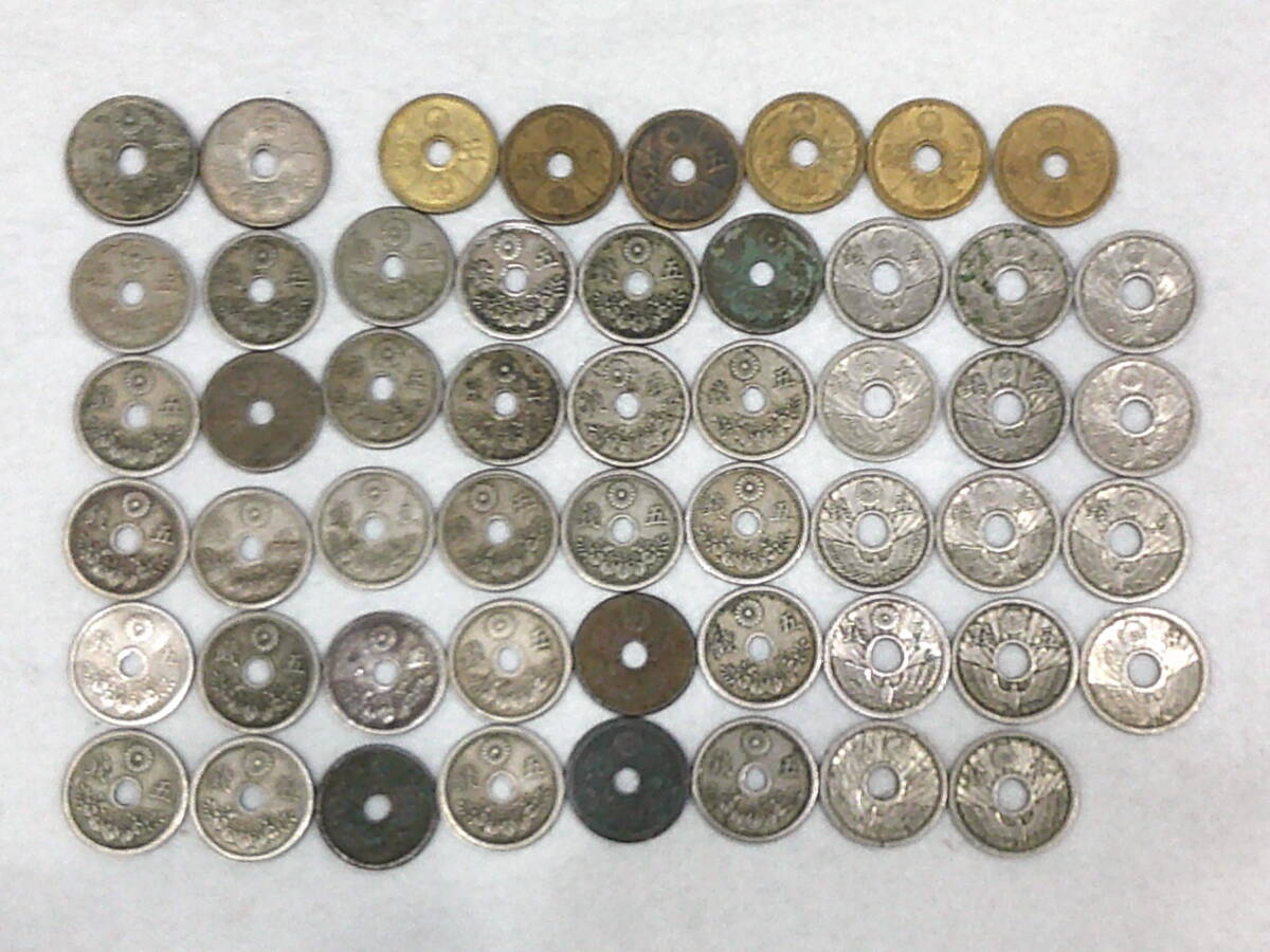 五銭 硬貨 まとめ52枚 5銭 大型 小型 白銅貨 ニッケル貨 アルミ青銅貨 穴あき 古銭 近代貨幣 アンティーク ヴィンテージ コイン 保管品 收藏