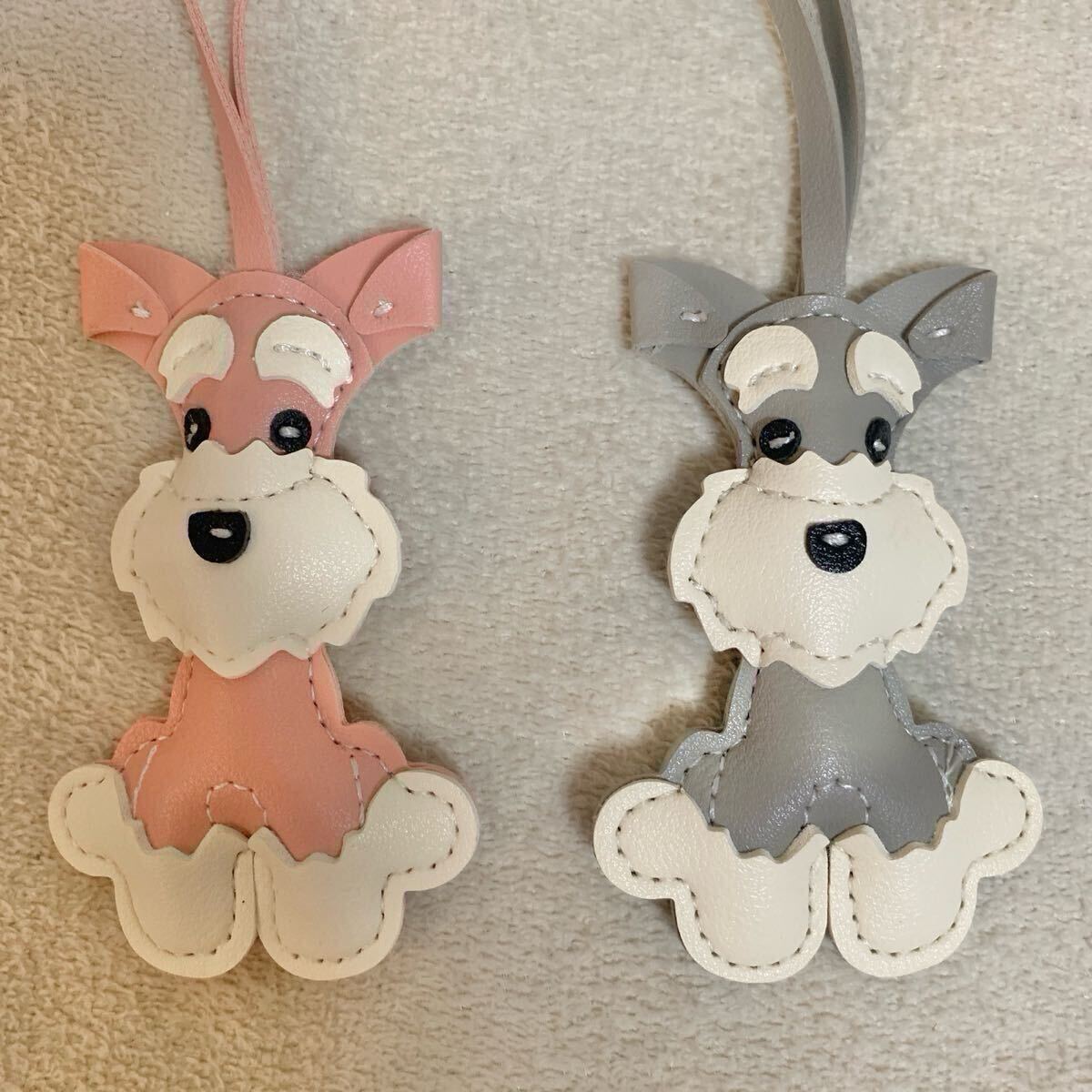 【2個セット】シュナウザー バッグチャーム グレー+ピンク わんちゃん 犬 アクセサリー 收藏