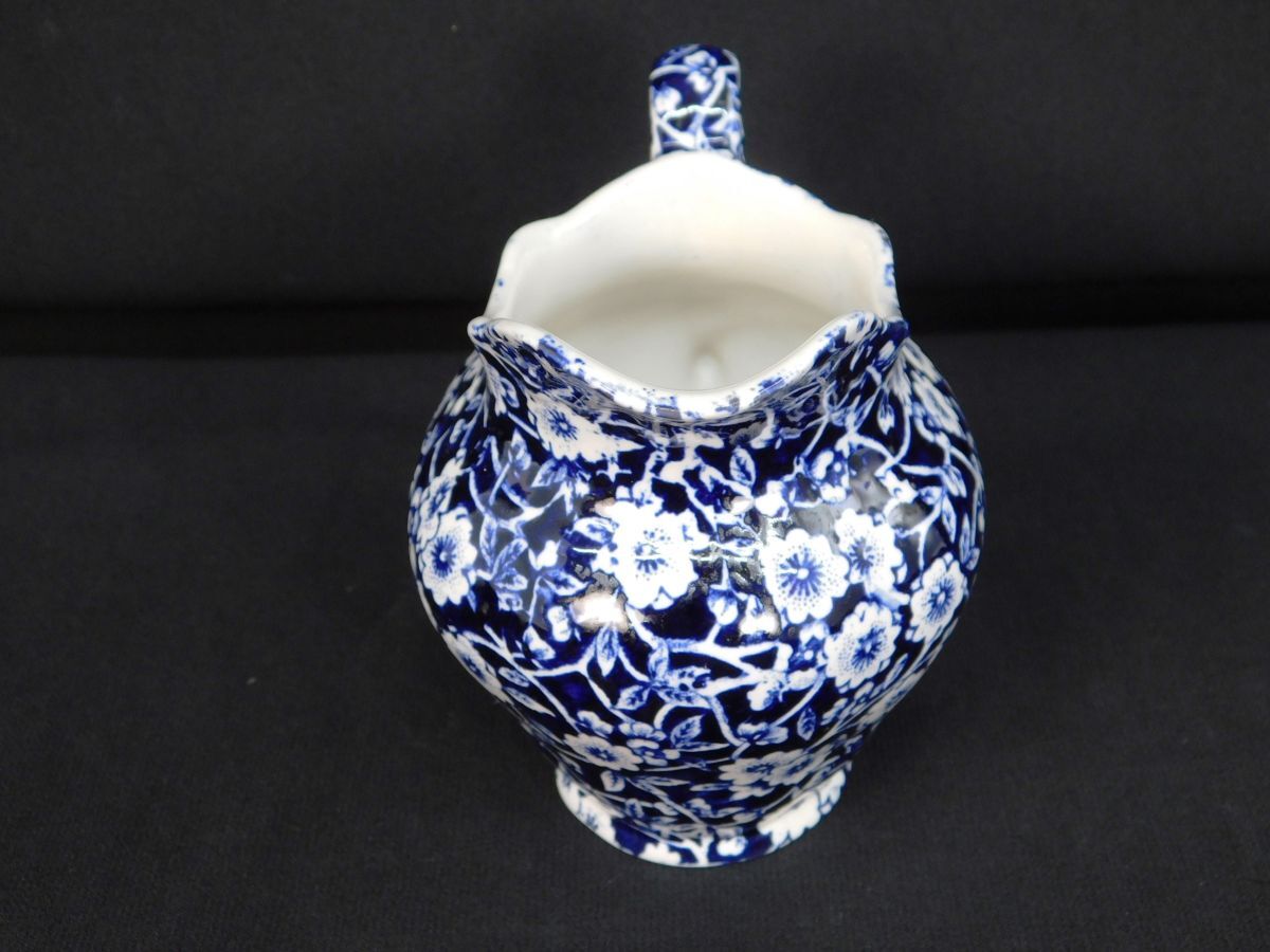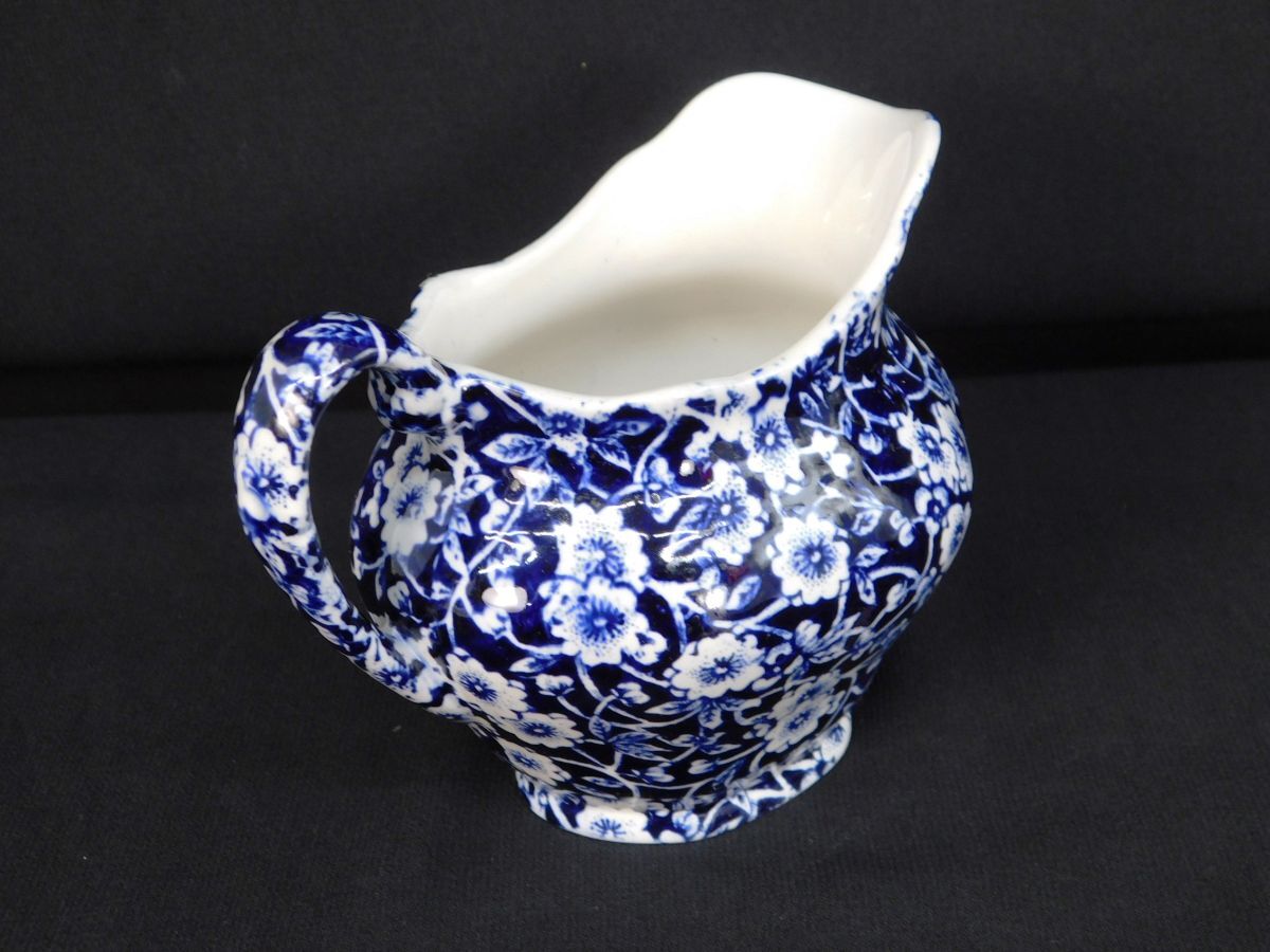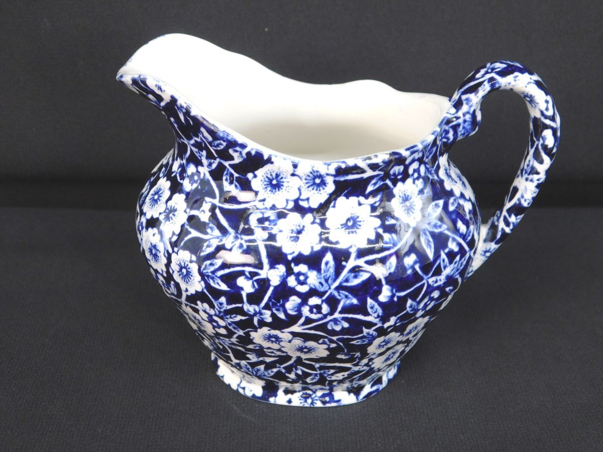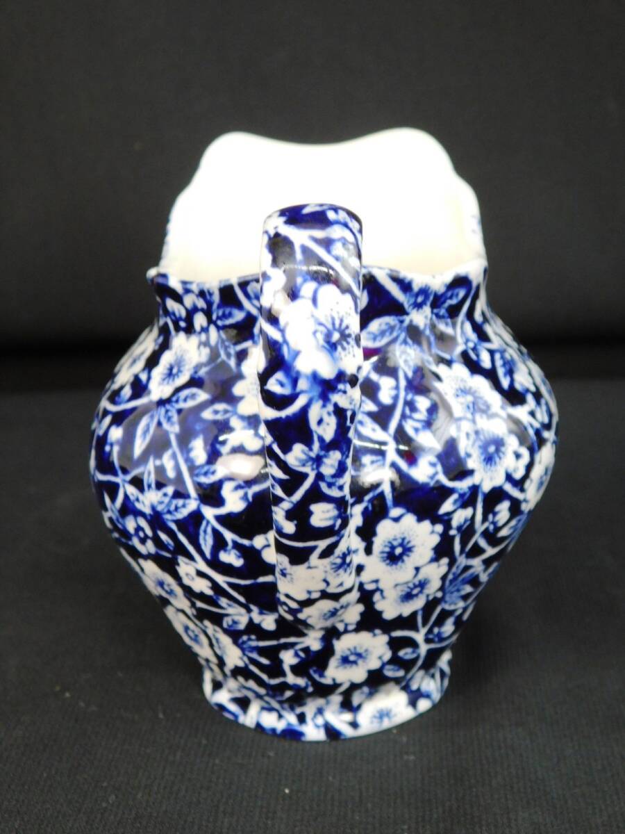 T812★バーレイ ブルーキャリコ クリーマー BURLEIGH CALICO イギリス陶磁器 プルナス 花柄 洋食器 高さ約12cm/235g★送料690円〜 收藏