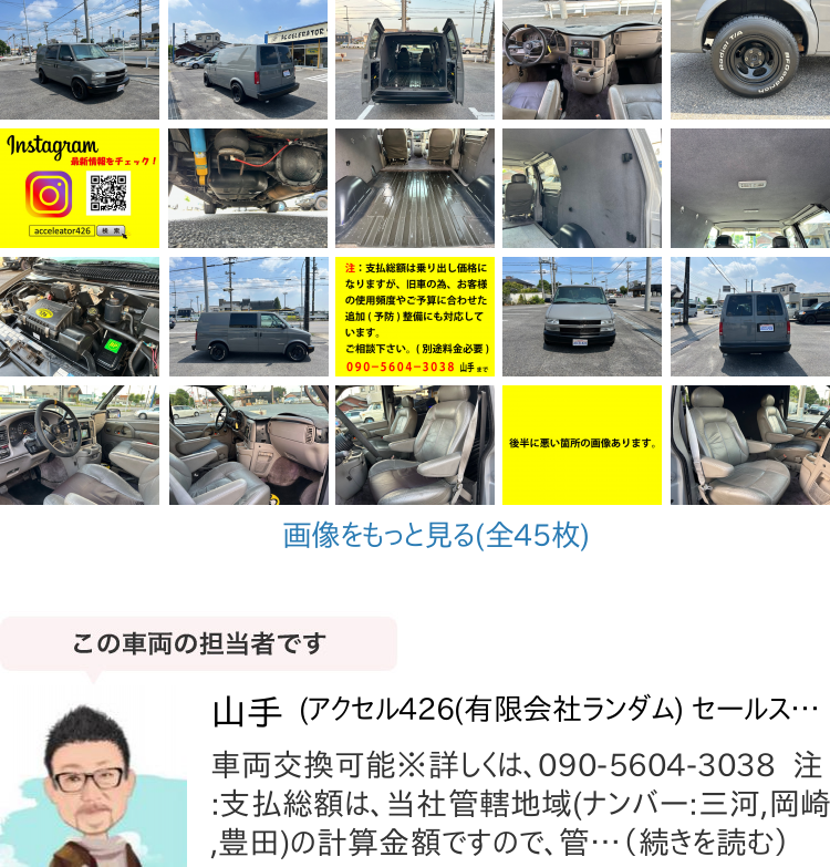 新車並行・純正パネルバン・4.3VORTEC・オールペイント済・R観音ドア・エアサス(エアバック&コンプレッサー/ファイアストン)・アライメント調整済・バセット5スポーク※マットブラックウレタン塗装・2インチドロップダウンスピンドル(ベルテック)・ショック(ビルシュタイン)・パンプストップ&スタビリンクエンド&センターブッシュ(エナジー)・BF-Goodrich-Radial-T/A(FR255/60R15)・革シート・i-pod・Bluetooth・スピーカー×4&ツィーター×2(カロッツェリア)・カロッツェリアサブウーファーシステム・バックカメラ・LED(ヘッドライト・ウインカー・テール・バックランプ)・ETC・MOMOディープコーンステアリング・記録簿・1No(NOx/PM適合)・クルコン・エアバック・ABS・C4AT・WAC・PS・PW・長さ480cm・幅197cm・高さ186cm・R18130※自社顧客下取車・中古メーター交換歴ありの為走行不明 ※リフレッシュ部品⇒アイドラアーム(左右)・Fハブベアリング・Fアッパーアームボールジョイント(左右)・アッパーアーム(左右)・ロアアーム(左右)・スターター・フューエルポンプ&フィルター・パワステホース(高圧・低圧)・エンジンオイルクーラーホース・ファンベルト・テンショナー・プーリー・触媒・O2センサー・ACブロアモーター・ウインカーレバー他