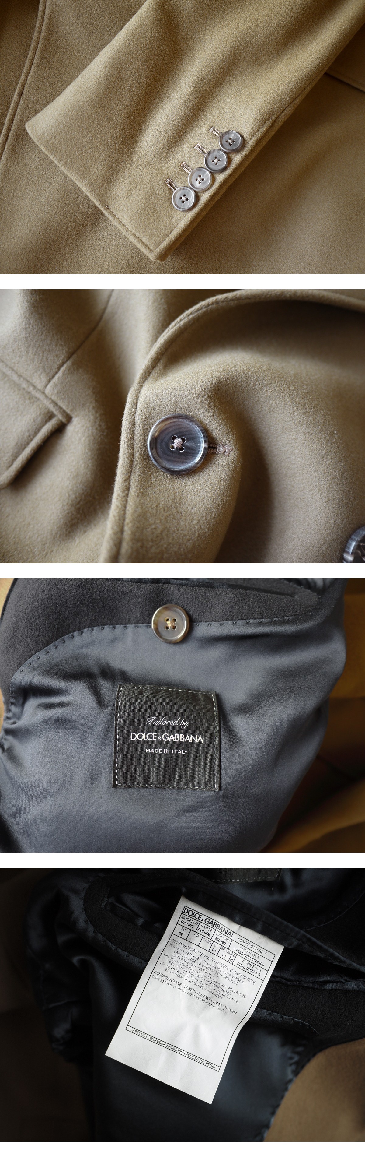 近年のトレンドにマッチし、品質、デザインどれをとっても一級品でございますので、この機会にぜひよろしくお願いいたします。 brand Dolce & Gabbana made in Italy price \387,000(参考上代) color camel material wool 79% polyamide 19% elastane 2% サイズ 52 肩幅45 着丈100 袖丈68 身幅54 (多少の誤差はご了承ください。) 状態 使用感のあまり感じられない美品となります。裏地含めダメージは見受けられず末永くご使用頂ける状態です。 |