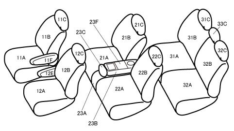 | 適合シート形状 | 1列目背もたれ裏側ポケット上部にUSBソケット「無し」 / 2列目「ロングスライド」シート / 3列目シートスライド「無し」 |