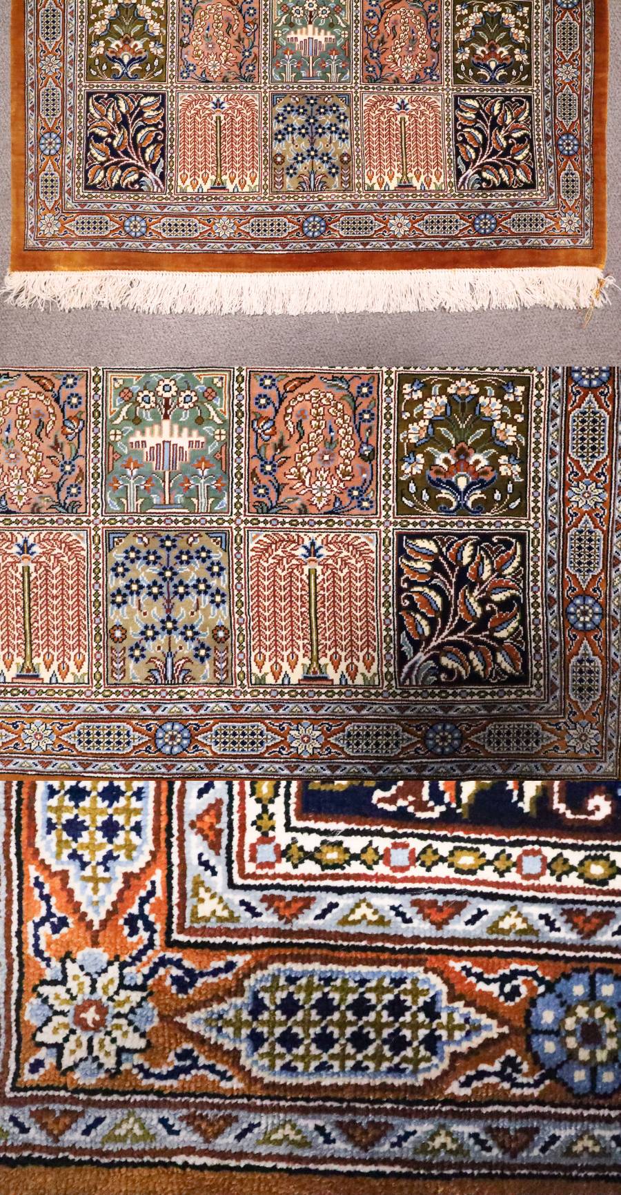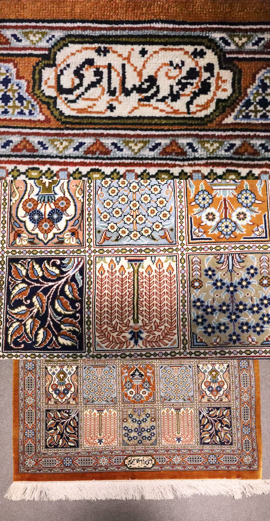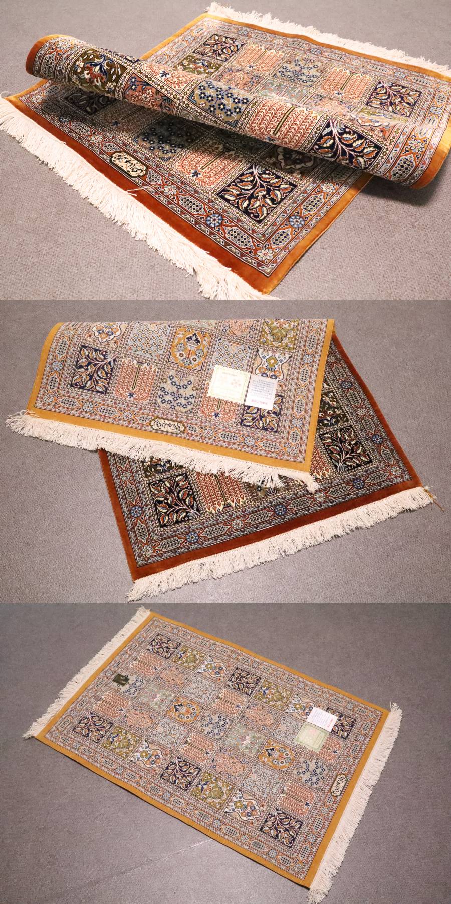 ◇雅◇ ペルシャ絨毯 ヘレケ イランクム産 SCHFA スチファ 100万ノット シルク100% 61×90cm 工房名 カーペット /BOA.25.6 [K54] QR 收藏