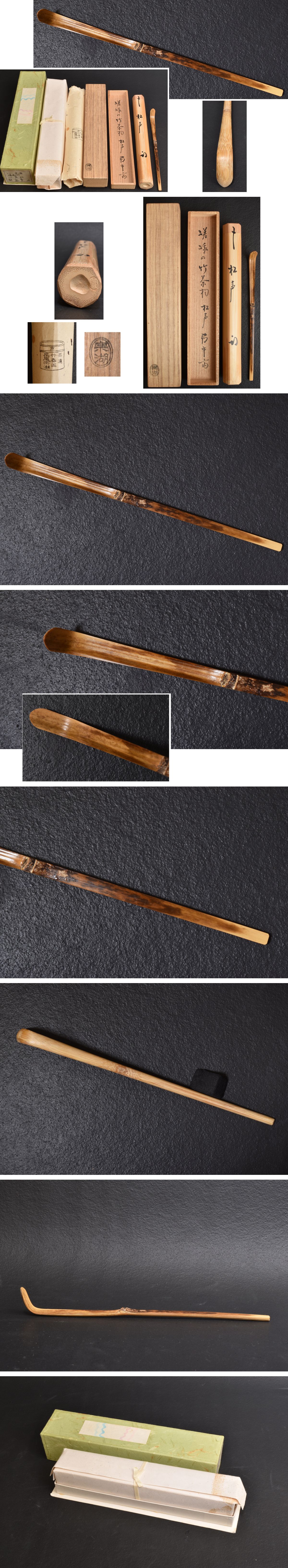 6137 茶杓 尋牛斎書付 嵯峨の竹茶杓「松声」長尾宗湖 共箱 收藏