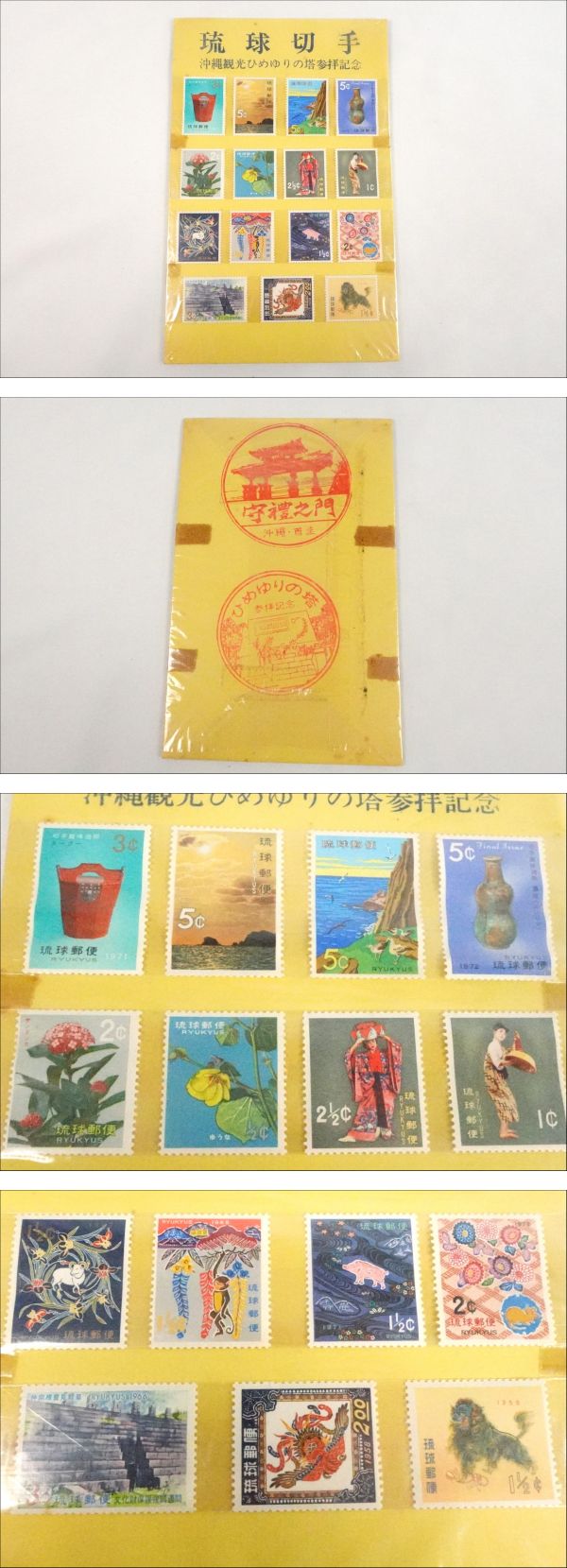 琉球切手 沖縄観光 ひめゆりの塔 参拝記念 15枚まとめ 記念品 台紙付き | |||