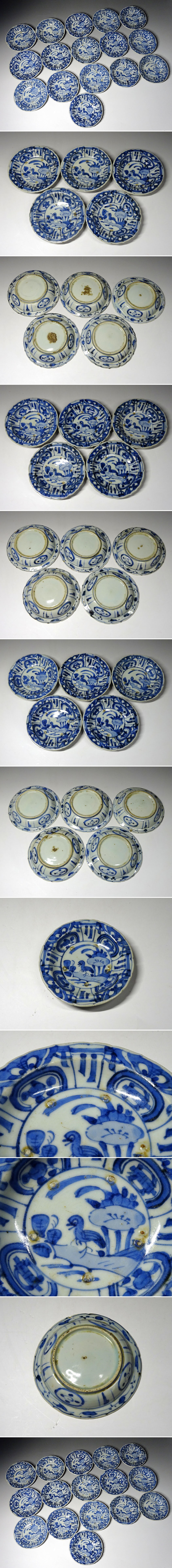 緑屋c■ 時代物 王地山焼 染付 小皿 16枚 古陶磁 i9/10-6616/19-3#60 收藏