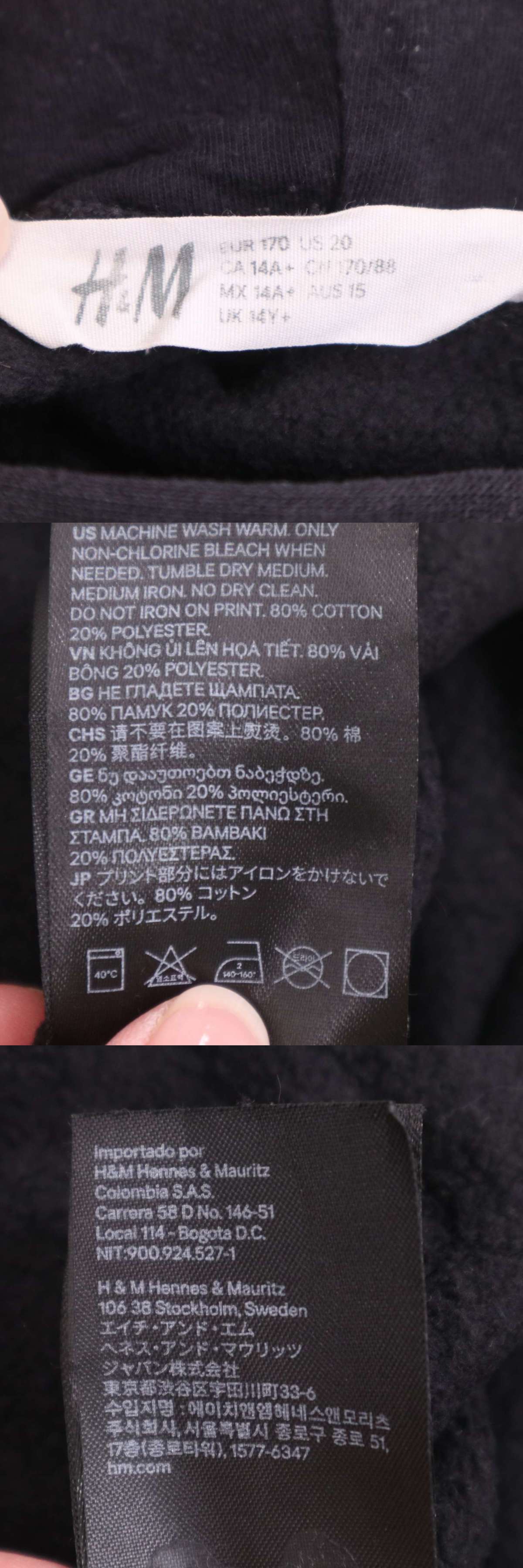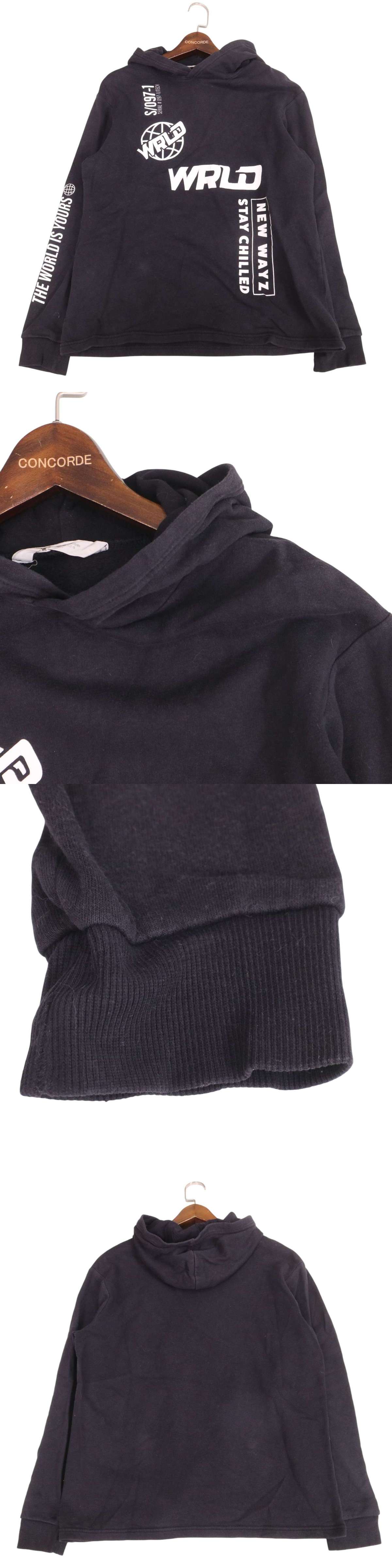 H&M エイチ&エム 秋冬 裏起毛★ グラフィックプリント パーカー フーディー Sz.170 キッズ 黒 收藏