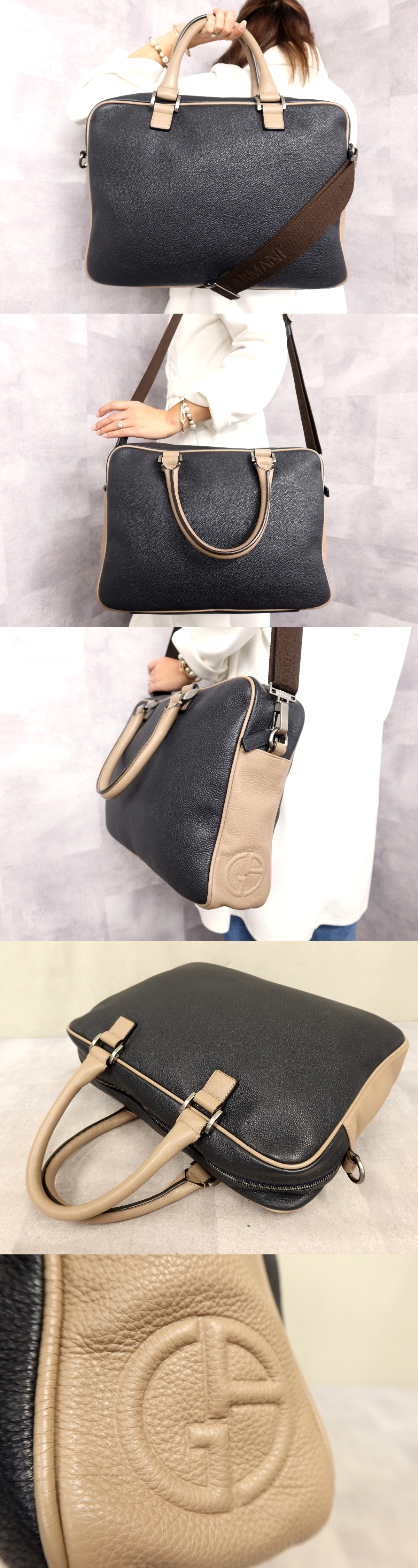 ●超美品●ジョルジオ アルマーニ●メンズ●カーフ レザー 本革●2way トート ビジネス バッグ●ネイビー グレージュ●SV金具●A4●Js62282 收藏