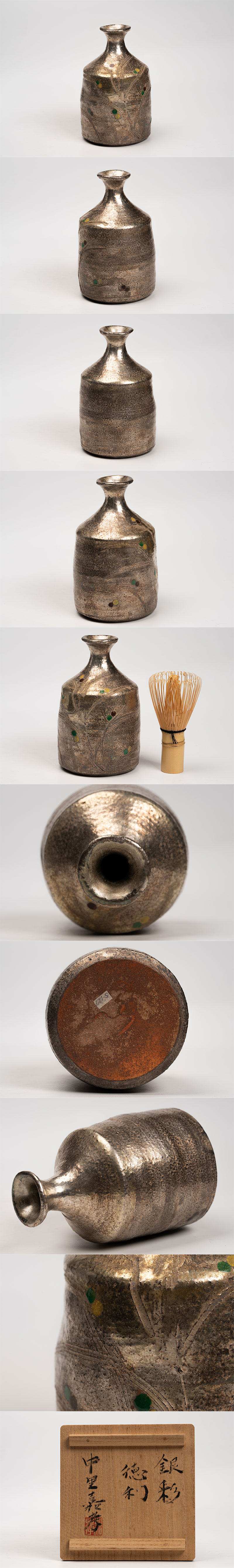 中里嘉孝 銀彩徳利「茶道具・酒器・徳利」共箱 送料無料 【真作保証】 收藏