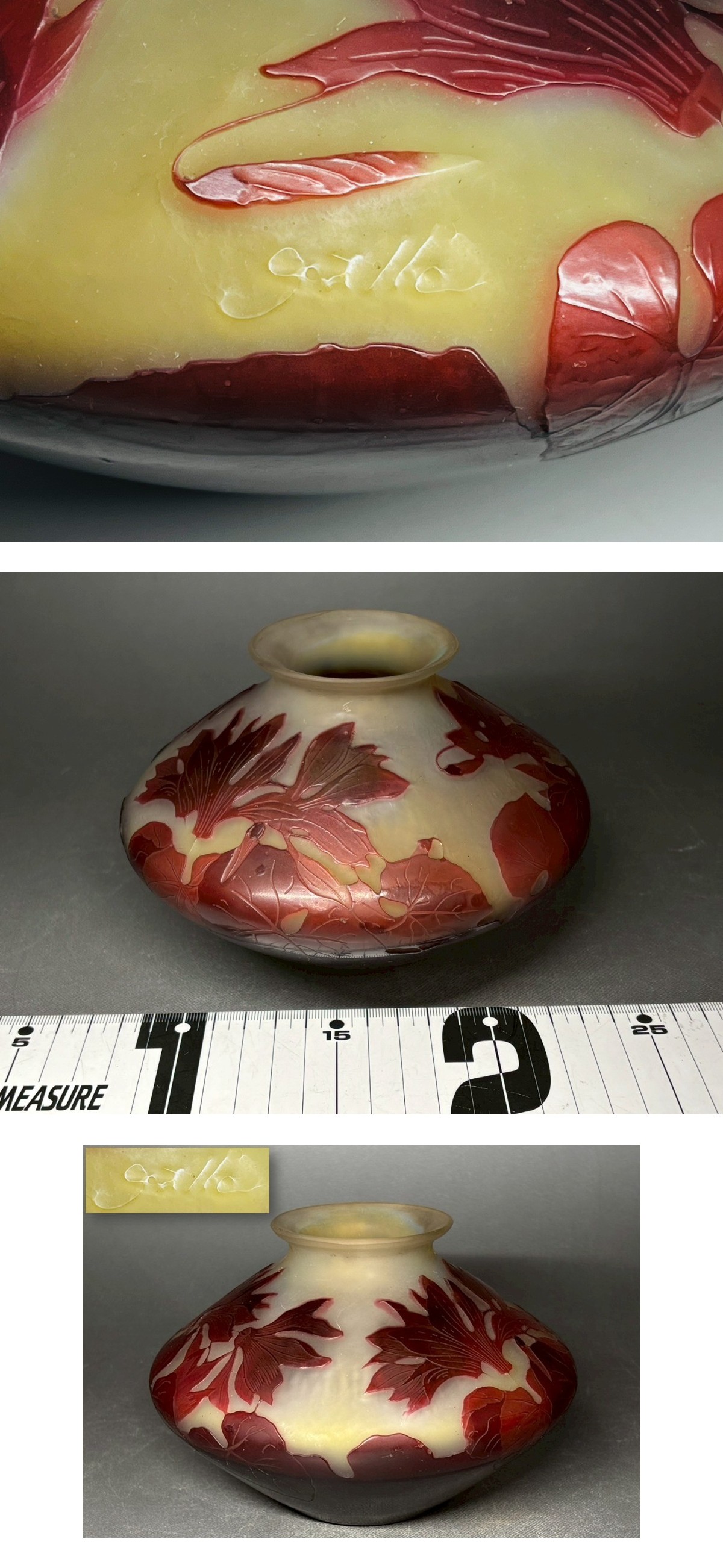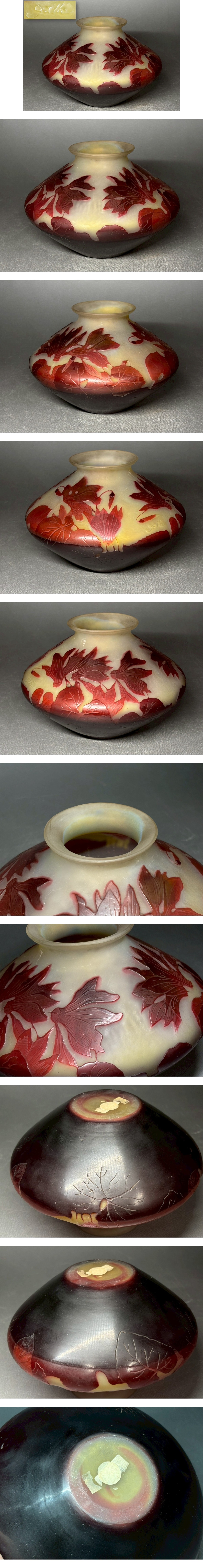 エミール・ガレ Emile Galle カメオガラス 花文 花瓶 サイン入り アールヌーヴォー 骨董 美術 飾物 花入 コレクター放出 アンティーク 收藏