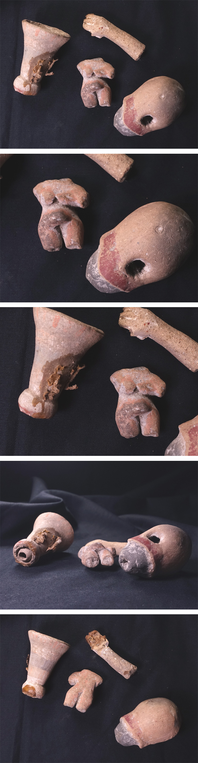 ∇花∇古代南米遺物 プレ・コロンブス 彩色土器残欠4点 テラコッタ メキシコ マヤ アンデス 民族美術 発掘出土品 收藏