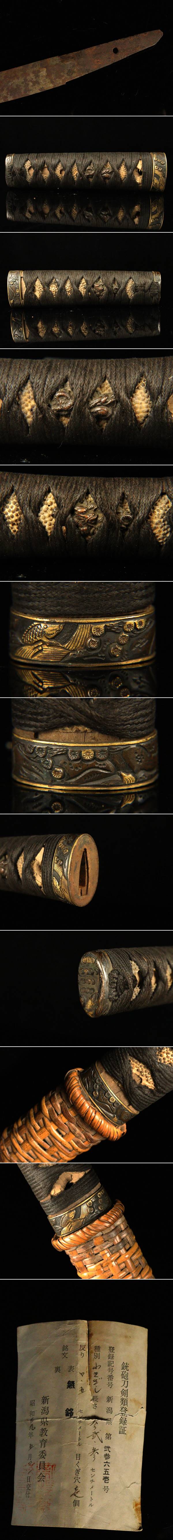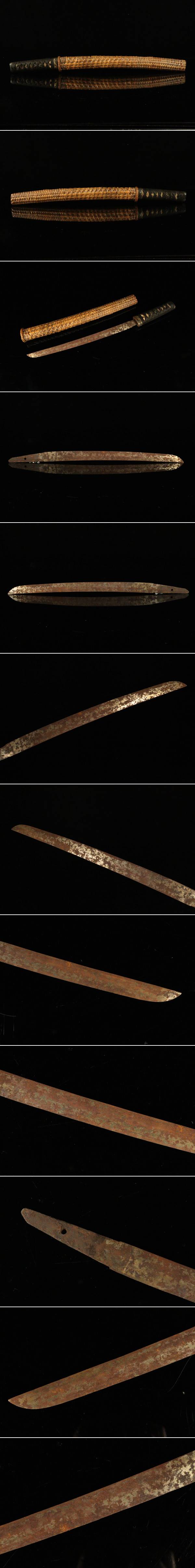 【ASAHI】時代武具 脇差 無銘 32.3cm 錆身 時代拵 鮫皮巻柄金象嵌縁頭 富士巻鞘入[711108qy] 收藏