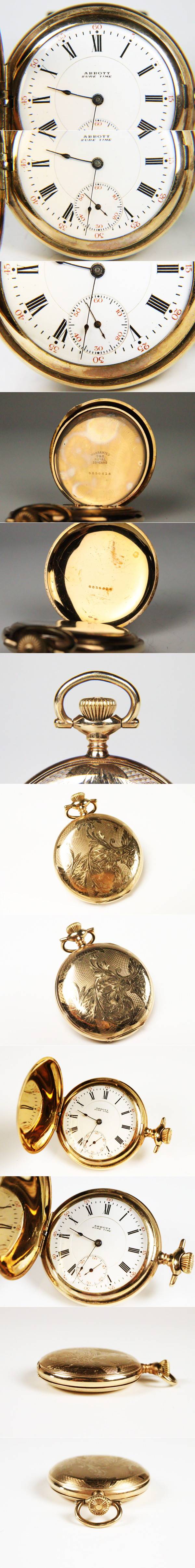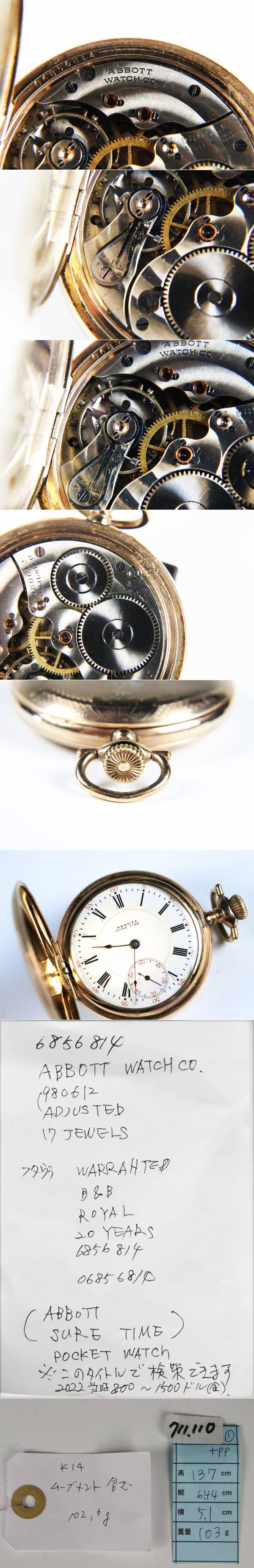 【ASAHI】懐中時計 K14 ゴールド保証 PocketWatch ABBOTT WATCH CO 機械式 総重量103g 金鑑定済み[711110tpp] 收藏