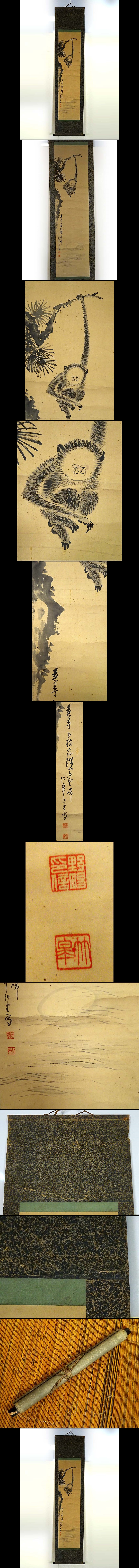 【模写】緑屋s■ 掛軸 共箱 竹皐 「手長猿」 茶掛 紙本 掛け軸 mae/10-368/b-2#80 收藏