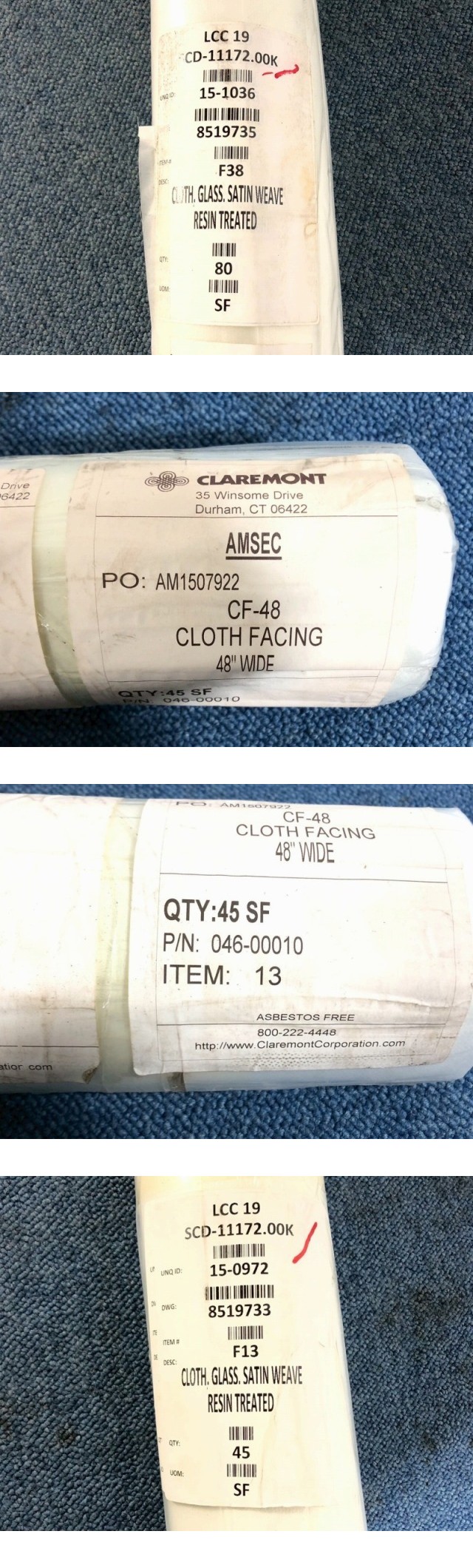 【米軍放出品】未使用品 グラスファイバーシート 幅122cm×厚さ0.4mm 4枚(54.8m/27.4m/6m/3m) ☆BL4NM-W#25 收藏