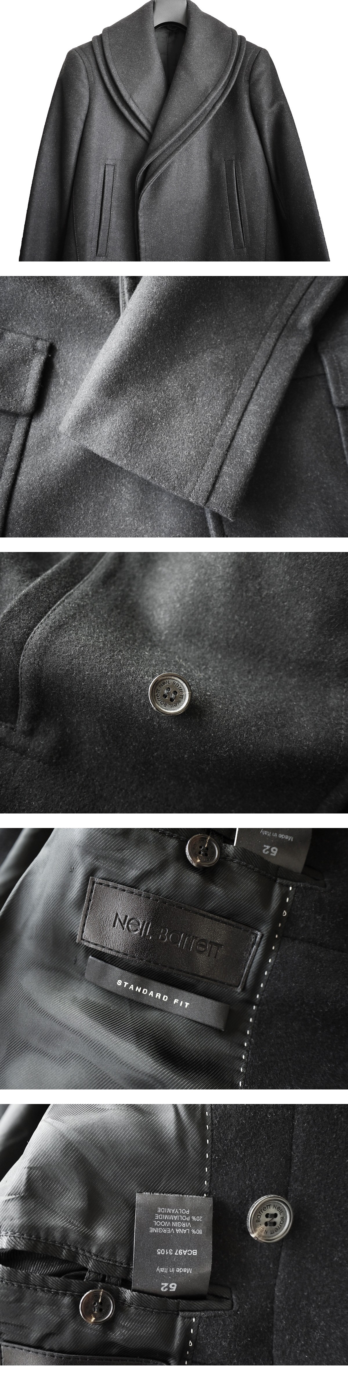 brand NeIL BarreTT made in Italy price \279,000(参考上代) material wool 80% polyamide 20% color charcoal black サイズ 52 肩幅46 着丈88 袖丈66 身幅55(多少の誤差はご了承ください) 状態 使用感のあまり感じられない美品となります。裏地含めダメージは見受けられず末永くご使用頂ける状態です。 |