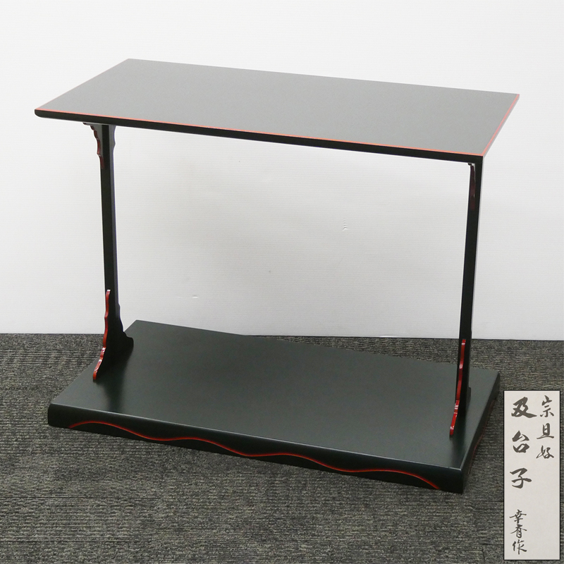 M57) 小林幸斎 作 宗旦好 及台子 組立式 紙箱付き!! サイズ約幅73.2×奥行39×高57cm 小林幸斉 青漆爪紅 及第台子 茶棚 茶道具 ♯ 收藏