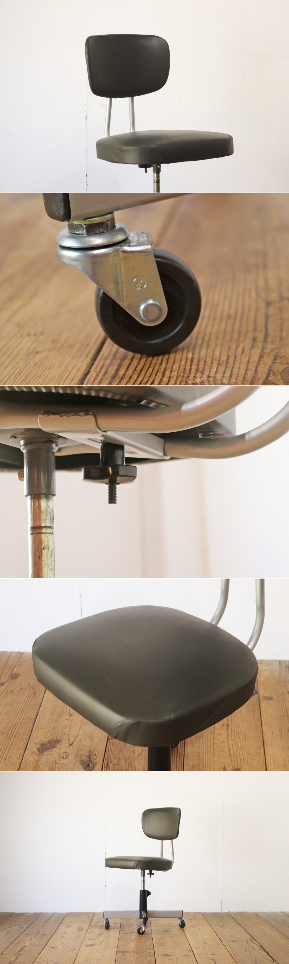 レトロ キャスターチェア 回転椅子 昇降 リクライニング 学校 合皮 レザー インダストリアル ヴィンテージ/U.S.アンティーク英国/PKK17182 收藏