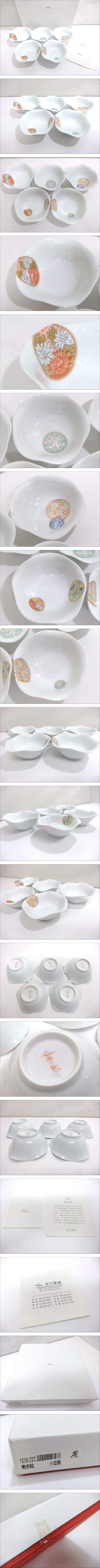 【新品】深川製磁 寿赤絵 小皿揃/5客セット/約9.5×10×4cm/四君子/西海波/小鉢/絵変わり/金彩/茶器/茶道具/和食器/06KO121804-8 收藏