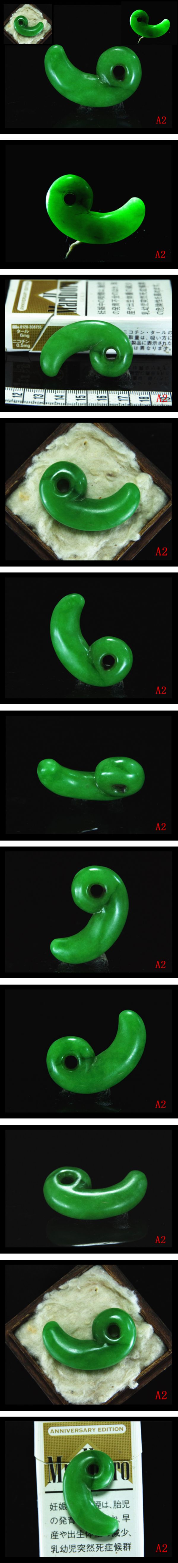 【A2】古墳期★透光性姿形抜群味わい深い濃翠緑色★極上ろうかん質硬玉翡翠製★佐賀県唐津市宇木汲田形勾玉★検★縄文出土器法具仏像原石 收藏