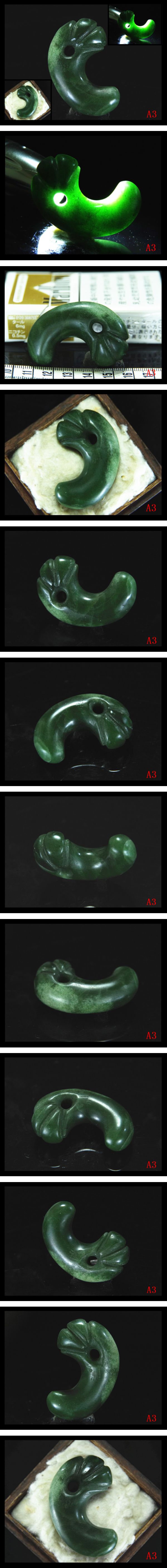 【A3】古墳期★透光性抜群表面肌艶良く濃緑色★上古玉製★極希少迫力特大頭部三本刻線丁字頭獣首形勾玉★検★縄文出土器祭祀具法具仏像原石 收藏