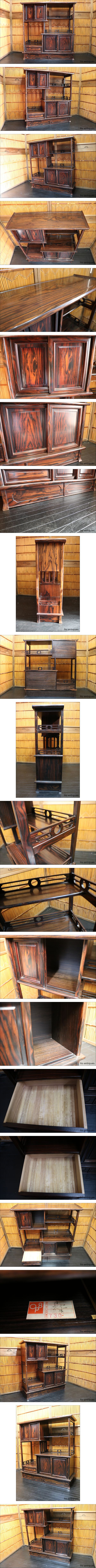 【伊董】c194.アンティーク!レトロ!古い飾り棚縞黒檀化粧板違い棚茶箪笥OP8品名大仁中桐 #茶箪笥 #和家具 #飾り棚 收藏