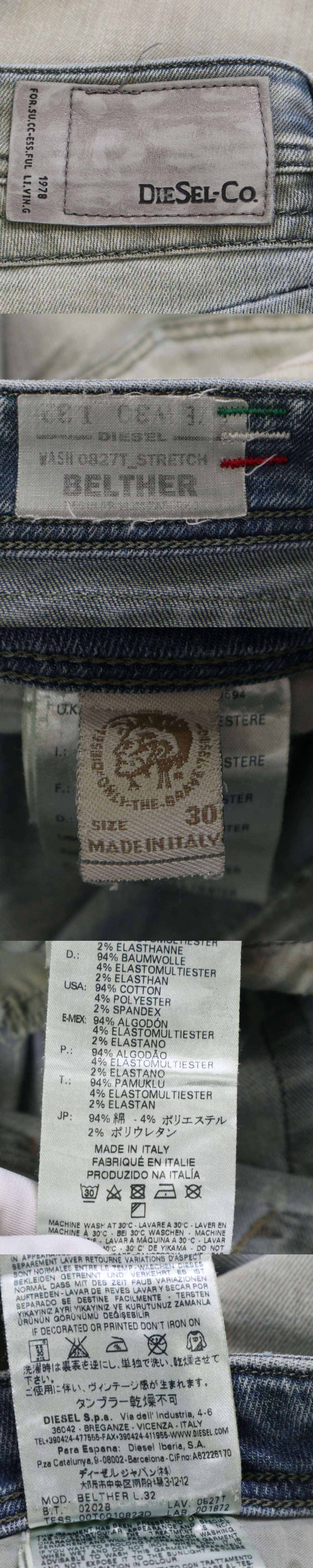 イタリア製★ DIESEL ディーゼル 【BELTHER 0827T】 ストレッチ ダメージ加工 デニム パンツ ジーンズ Sz.30 メンズ 收藏