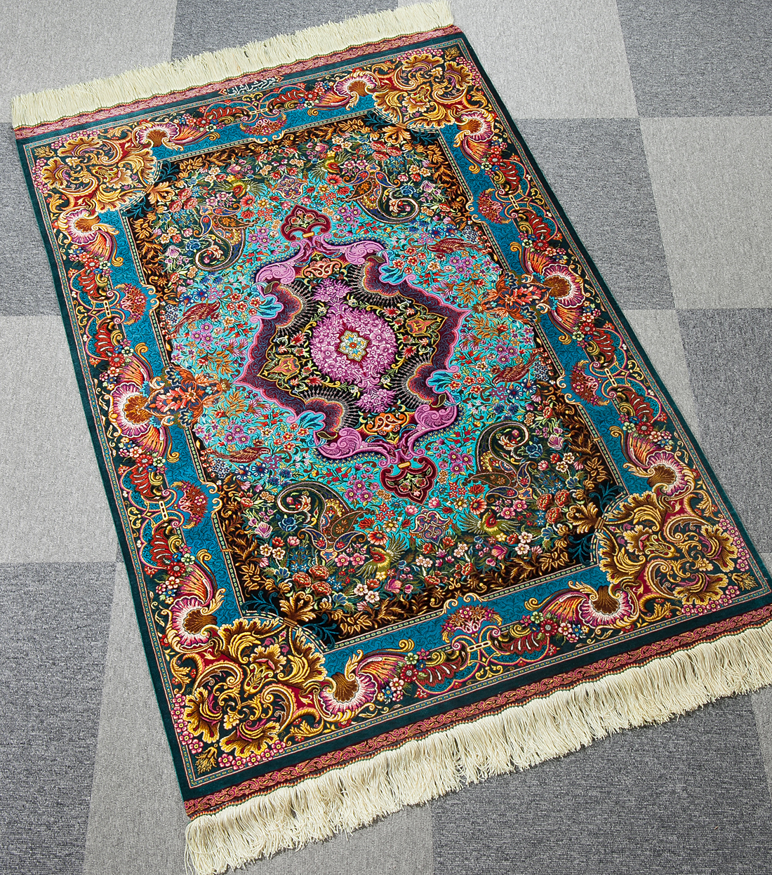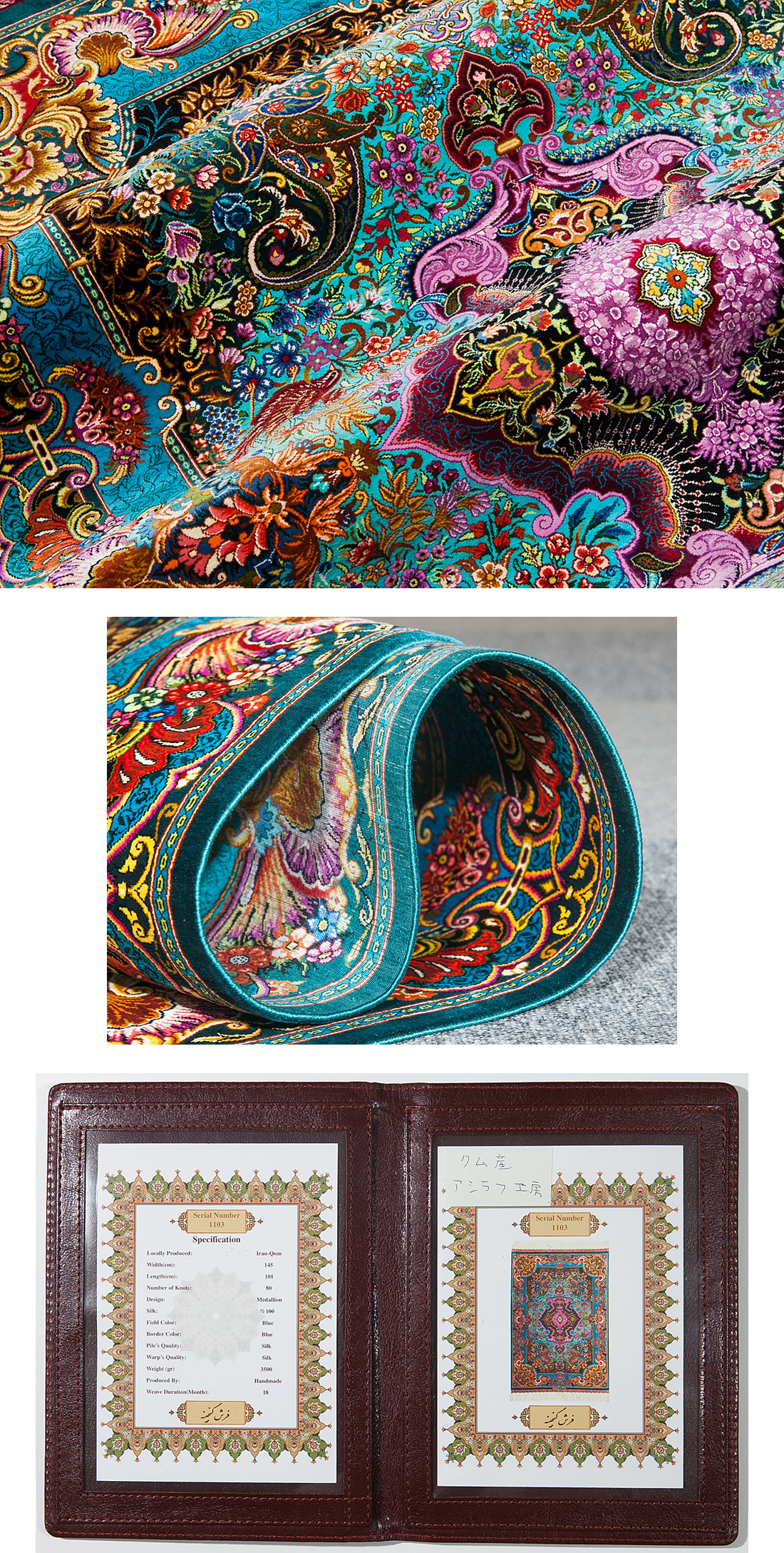 【五】ペルシャ 絨毯 絨緞 クム産 アシラフ工房 シルク 121万ノット 証明書付 收藏