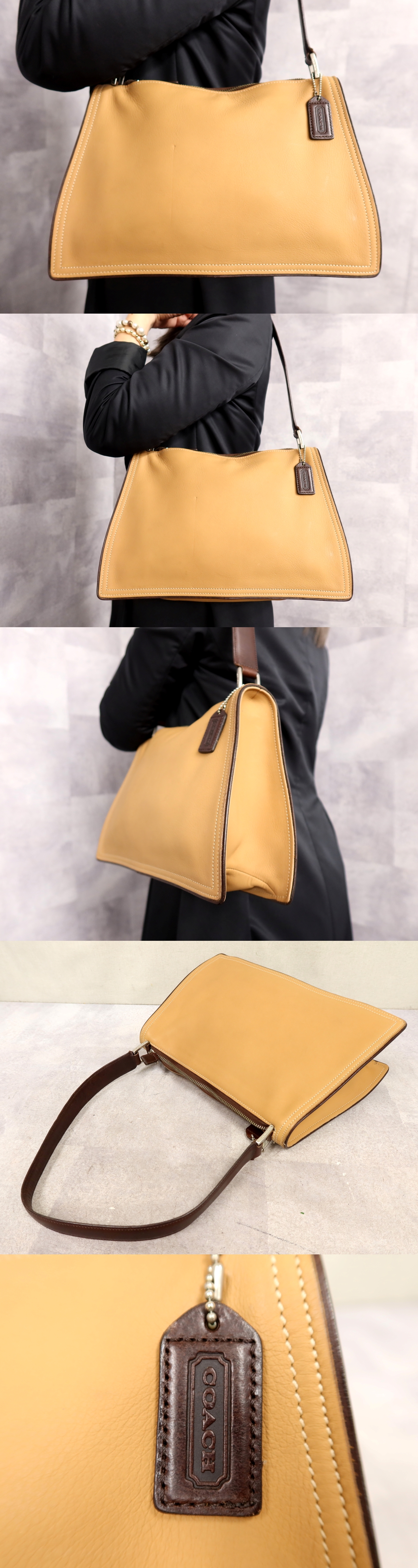 ●超美品●COACH コーチ●6145●カーフ レザー 本革●ショルダー バッグ●ベージュ ダークブラウン●シルバー金具●肩掛け●収納●Js64271 收藏