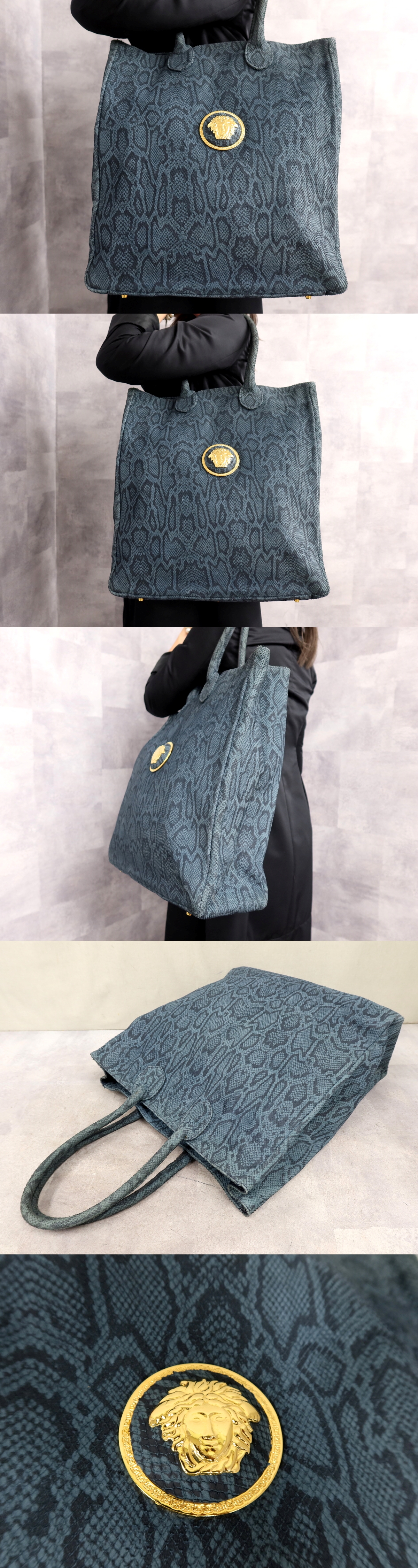 ●超美品●GIANNI VERSACE ジャンニ・ヴェルサーチ●メデューサ●パイソンプリント●トート バッグ●サックスブルー●G金具●A4●Js64277 收藏