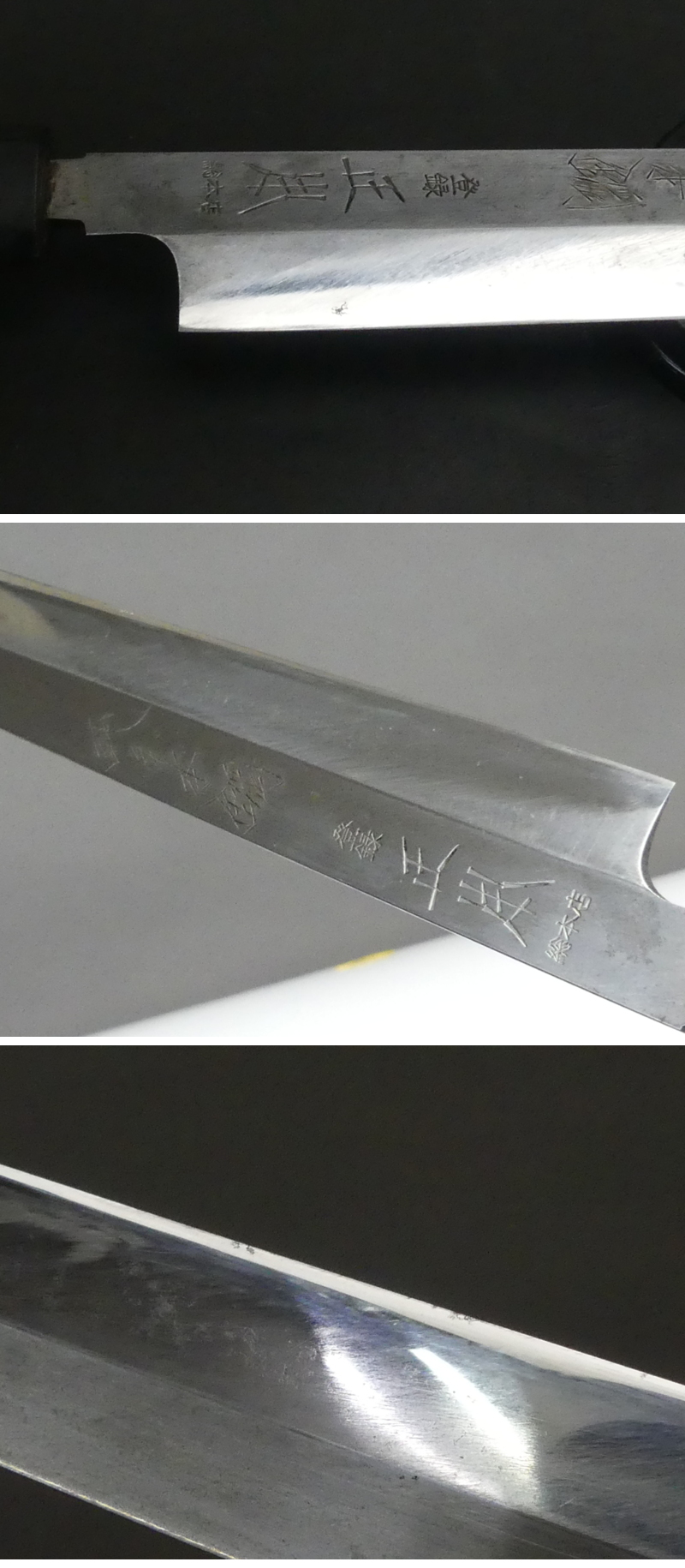 | ◇商品情報◇ | 当店の商品をご覧いただきありがとうございます!! 和包丁 正本 総本店 先丸蛸引 蛸引き 刺身 包丁 全長約52.7cm 1尺2寸 刃渡37cm 経年相応の小キズ擦れ汚れなどはございます。 口金にガタつき等はありません。 目立った刃毀れやひどい欠けなどはありませんが刃の状態は画像よりご確認ください。 状態などは画像を参考の上、ご検討をよろしくお願い致します。 ※目視チェックをしていますが、古物品の場合、見落としや細かな擦れ・薄汚れなどがある場合もございますので予め画像をご確認の上でご入札をお願いいたします。 商品のトップ画像端に写っている茶筅はサイズ比較用の備品ですので付属はしません 当店は信州上田に店舗を構え、県内の旧家や蔵より買い付けの際に出てきました物を出品 しております。 タイトルや文章など当店主観の判断ですので見識の相違などございませぬ様、画像でご確認くださいませ。 当時物や古物品では時代による劣化や痛みなど、何らかの瑕疵はあるものとしてご承知願います。 画像による判別が難しい場合や、画像にない箇所などで気になる場合は事前にご質問等でお問い合わせ下さい。 ご入札時には画像を良くご確認頂き、自己の責任のもとでオークションにご参加下さい。 | ||||||||||||||||||||||||||||||