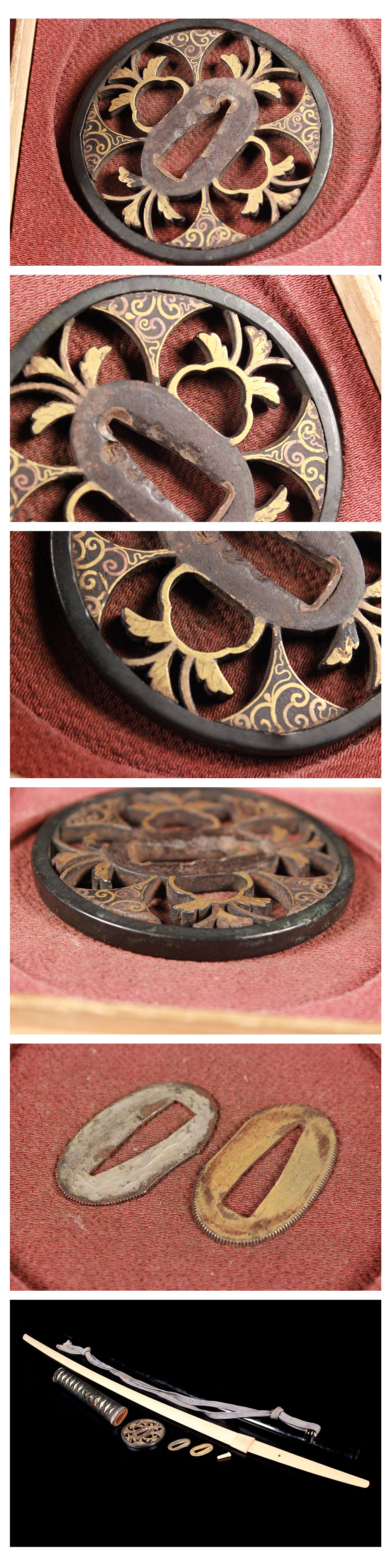 | 【喜楽】赤銅花鳥縁頭 変わり透かし鍔!! 刀用拵え 刀装具!! 112238 | - |