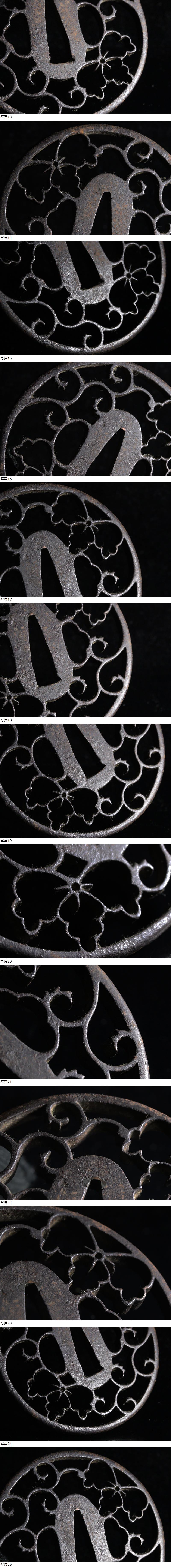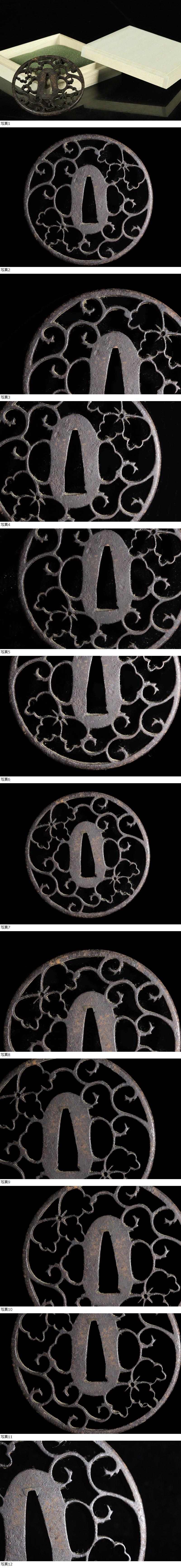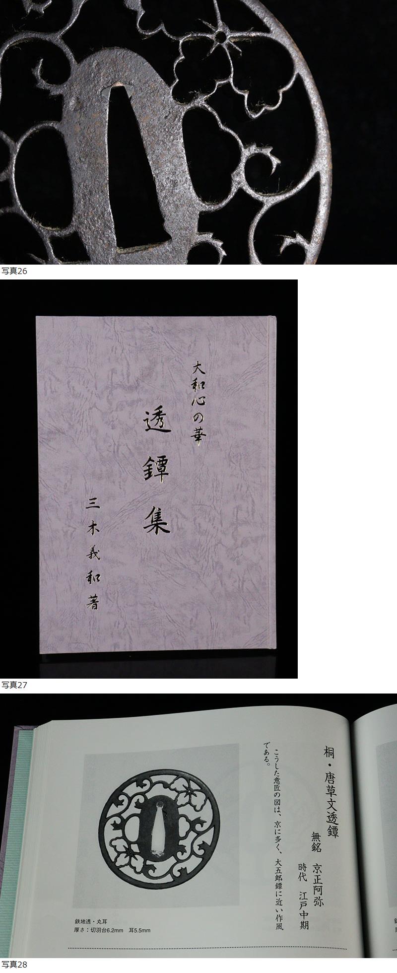 【縁】名小道具 大和心の華透鐔集図録同手 京正阿弥 無銘 鉄地丸形桐唐草文透鍔 刀装具 鐔 G-290 收藏