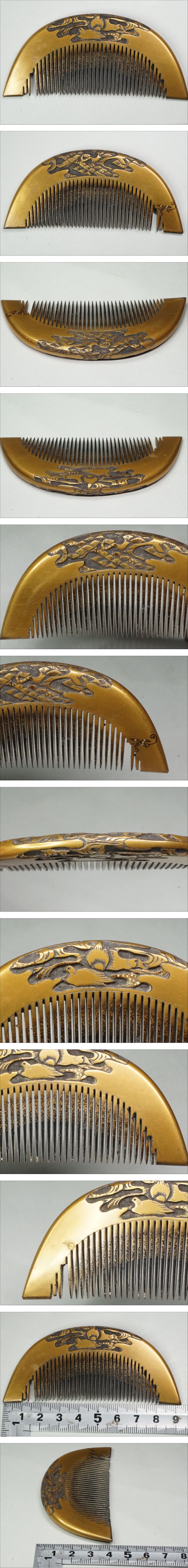| 商品説明 | 本金蒔絵の鼈甲櫛です。状態は経年の擦れ小傷や虫食いありますのでお写真をご覧ください。寸法は9.3㎝×4.2㎝ |