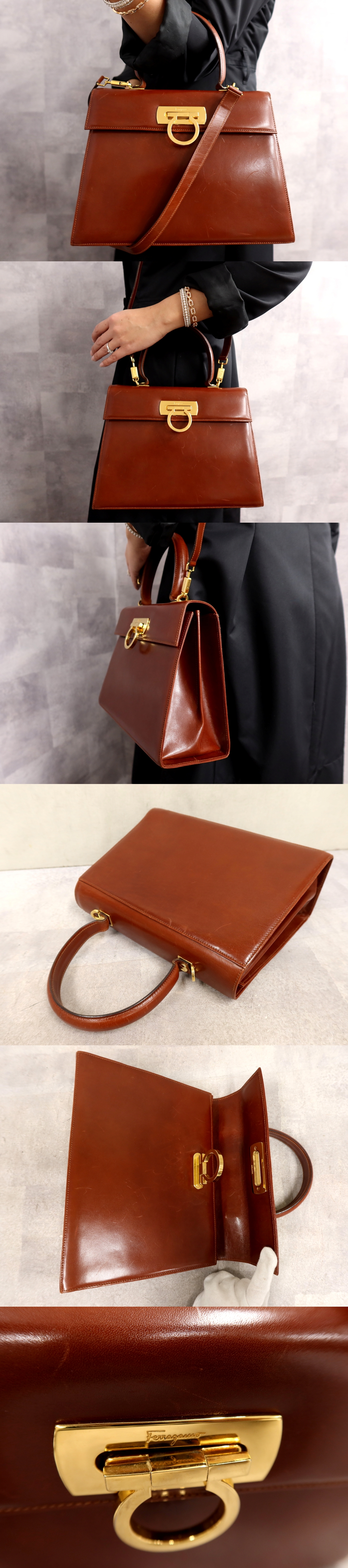 ●超美品●Salvatore Ferragamo フェラガモ●ガンチーニ●フラップ●カーフ レザー 本革●2way ハンド バッグ●ブラウン●G金具●Js64367 收藏
