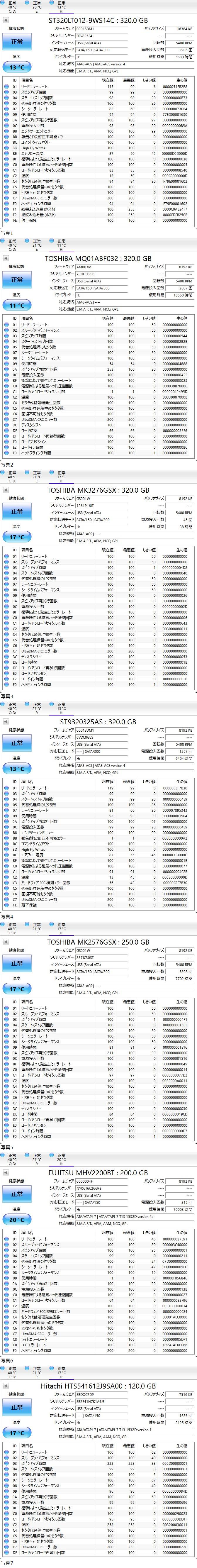 2.5インチ HDD Seagate WesternDigital HITACHI TOSHIBA FUJITSU 120GBから640GB 11機セット 正常に稼働してますがジャンク扱い 收藏