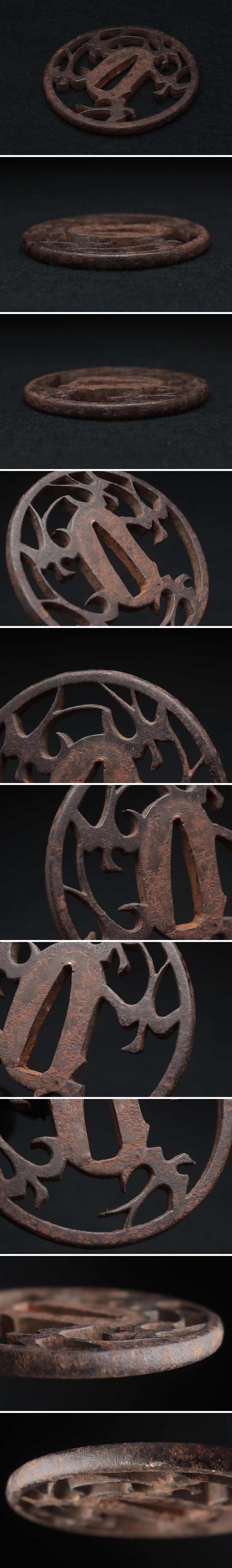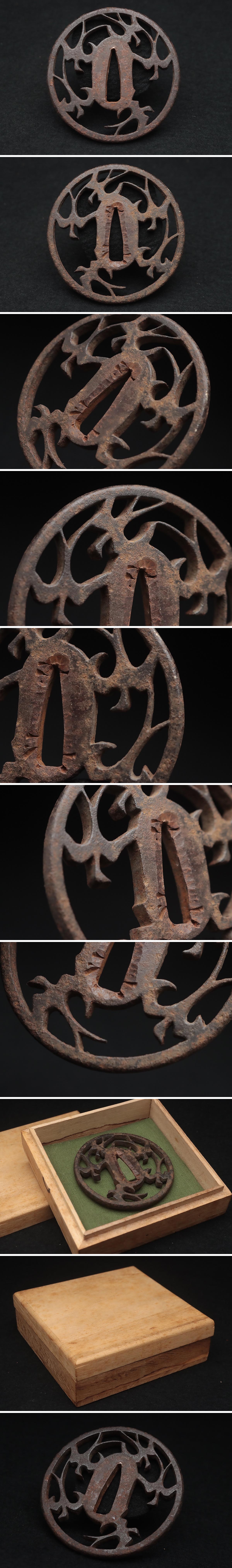 | ◆ 時代刀装具 無銘 鉄地 五羽燕透鍔 径7.4cm 木箱附・鉄透鍔・鉄鐔・古鍔 武具 古金工 古美術 小道具 ◆