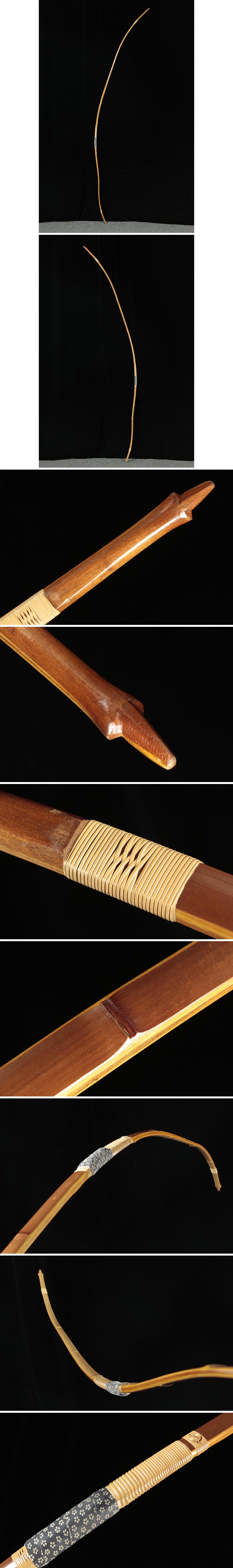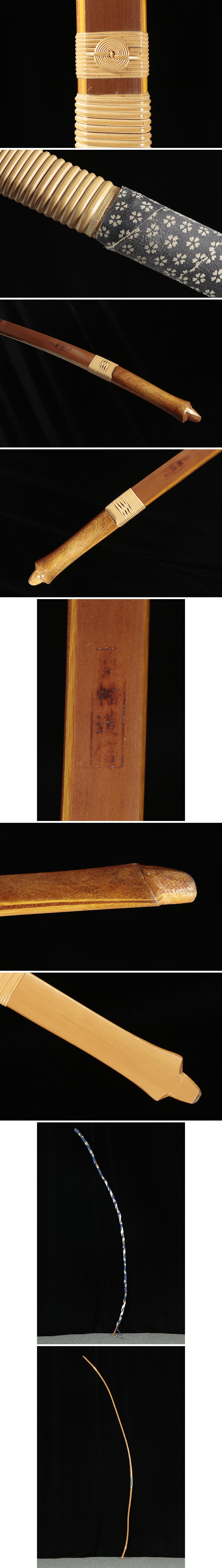 | ◆ 古弓具【桑幡道信 作】竹弓・和弓 全長213cm / 反り221cm 重455g 袋付・古弓 武具 弓道具 武具 古美術 ◆
