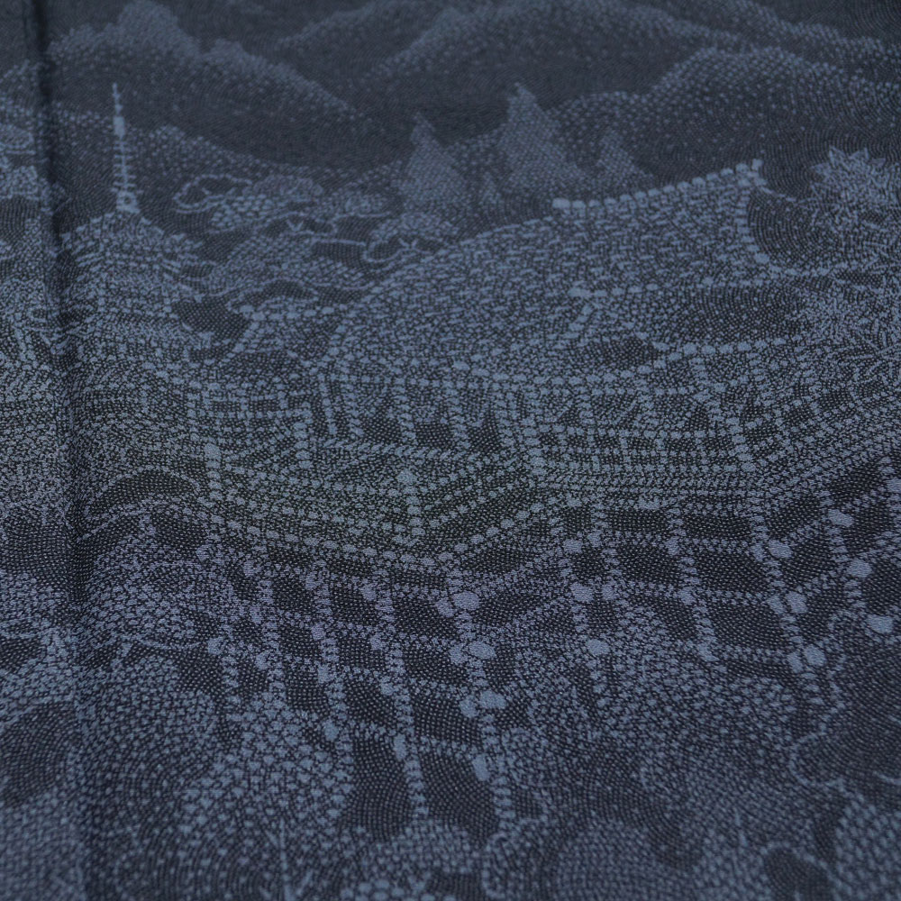 | 仕 立 | 袷仕立て 波頭に小花模様の地紋入り黒色系ぼかし八掛 |