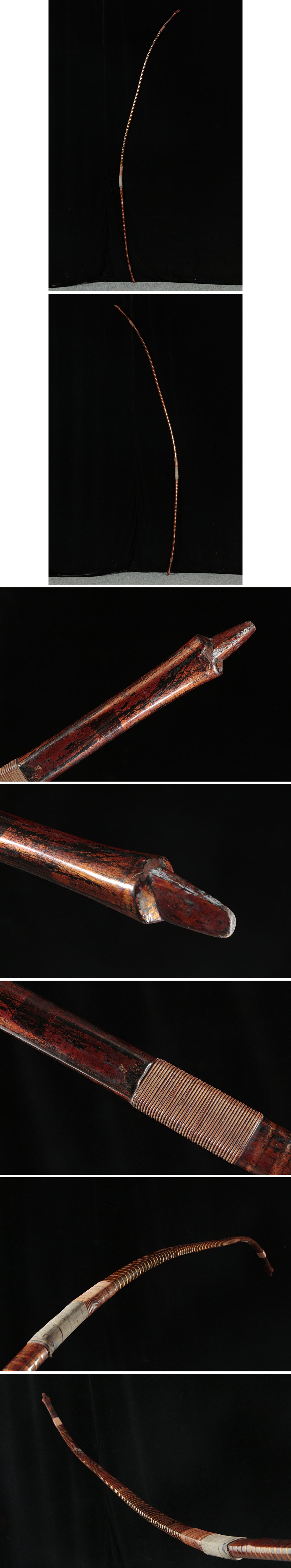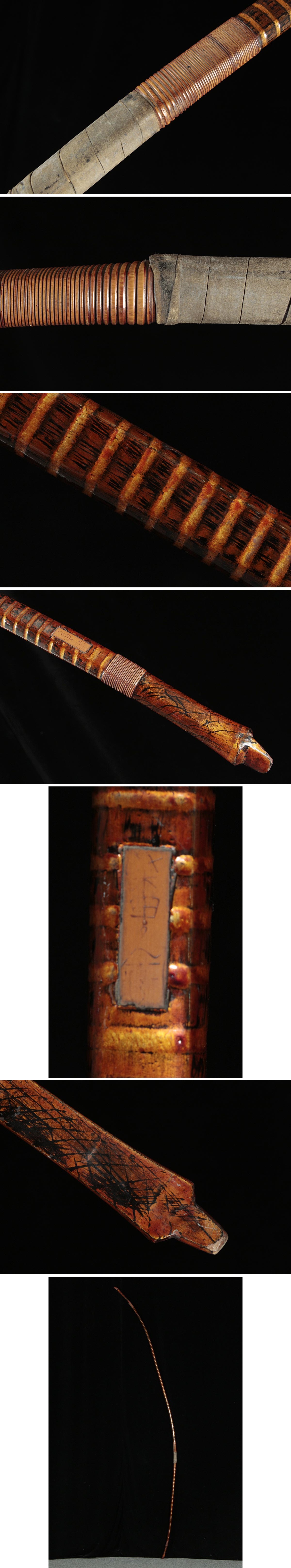 | ◆ 【柴田勘十郎 作】漆塗金彩 刻み目彫 竹弓・和弓 全長212.5cm / 反220.5cm 重645g・古弓 武具 弓道具 武具 古美術 ◆